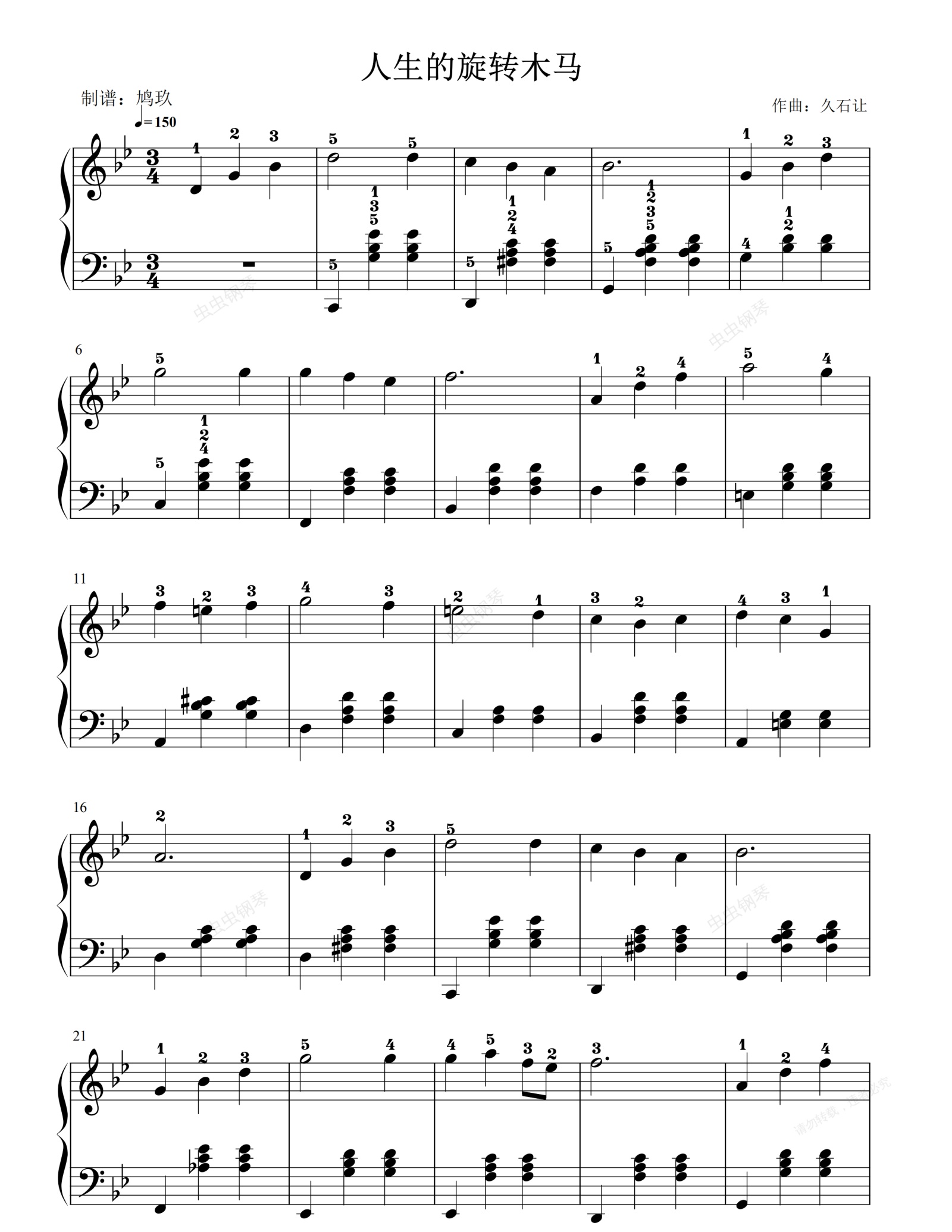 钢琴谱:Easy Piano/Howl's Moving Castle OST:Merry Go Round of Life by Joe Hisaishi