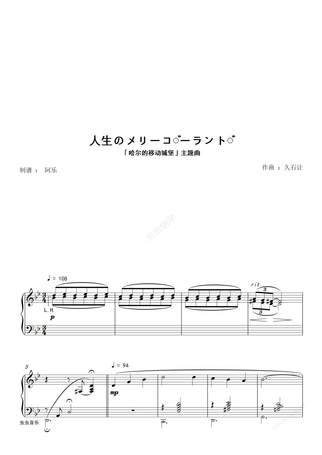 久石让:天空之城 and print in PDF free sheet music for  인생의 회전목마