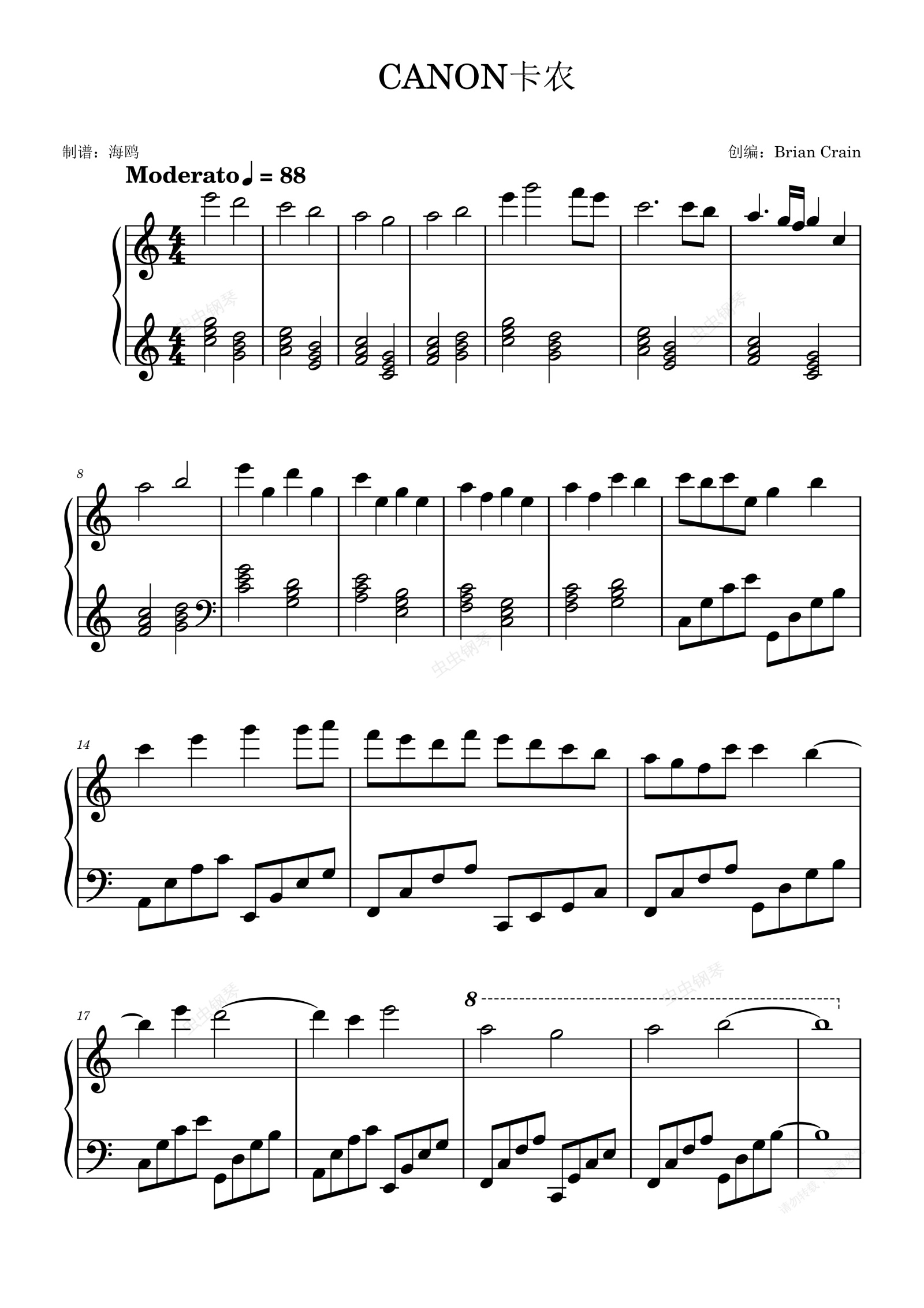 钢琴谱:Canon in D Major