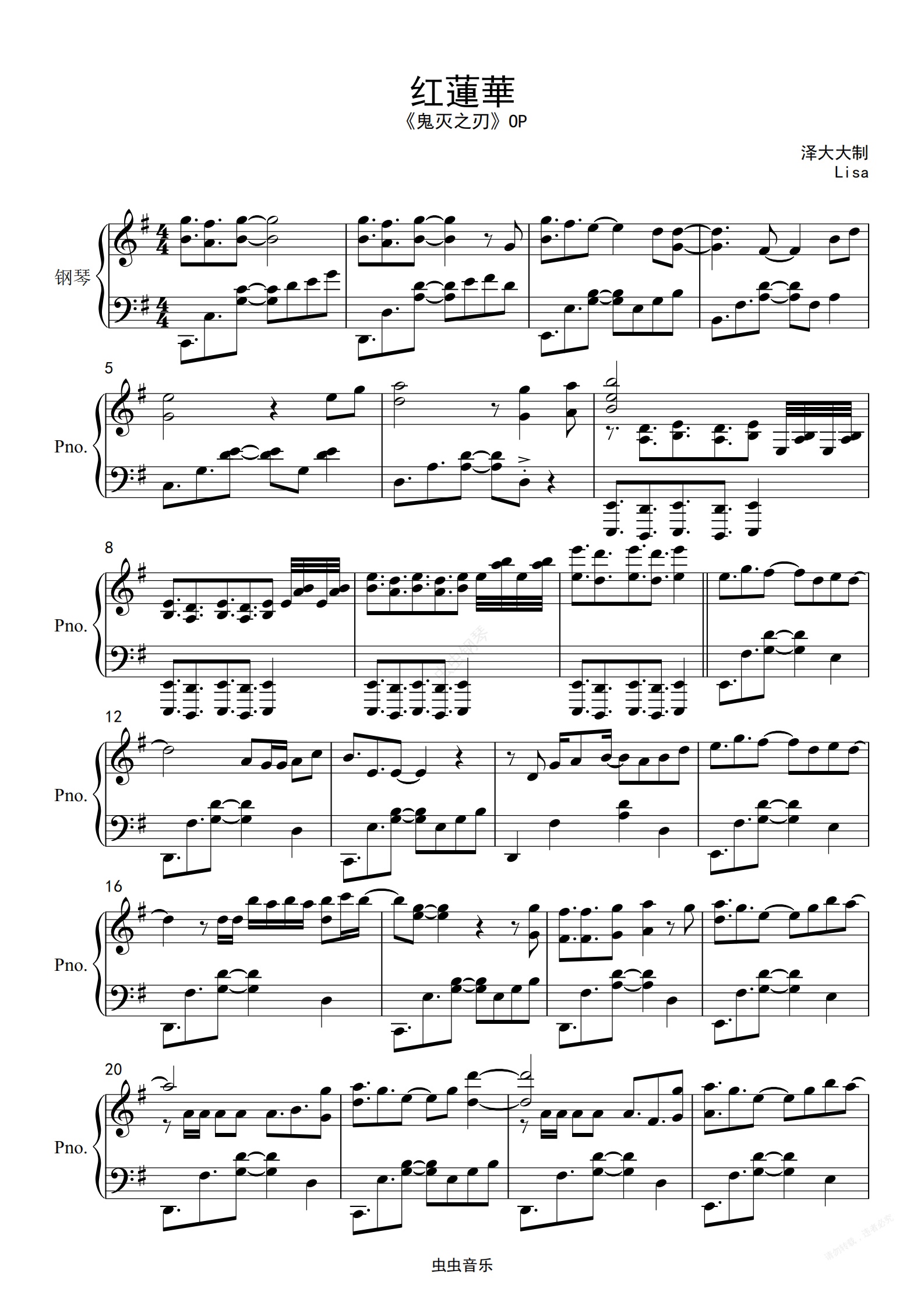 钢琴谱:Demon Slayer S2 OP:Zankyou Sanka(LiSA)