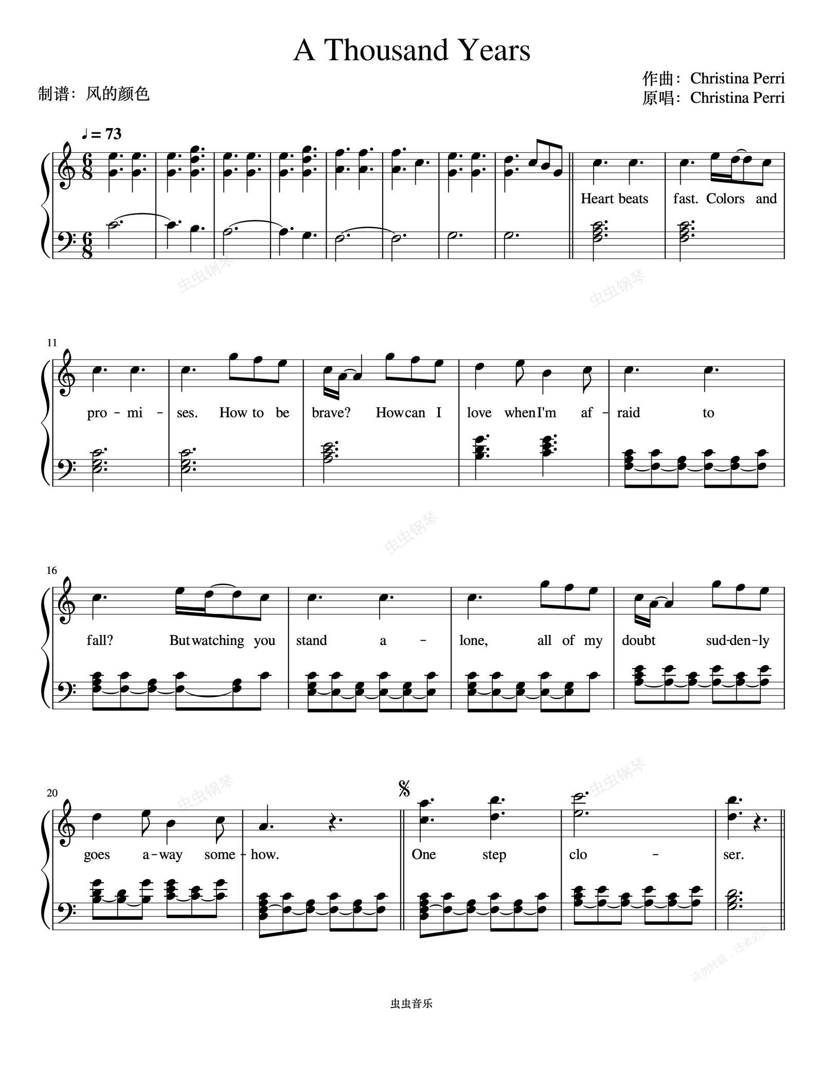 钢琴谱:A Thousand Years in C - The Twilight Saga