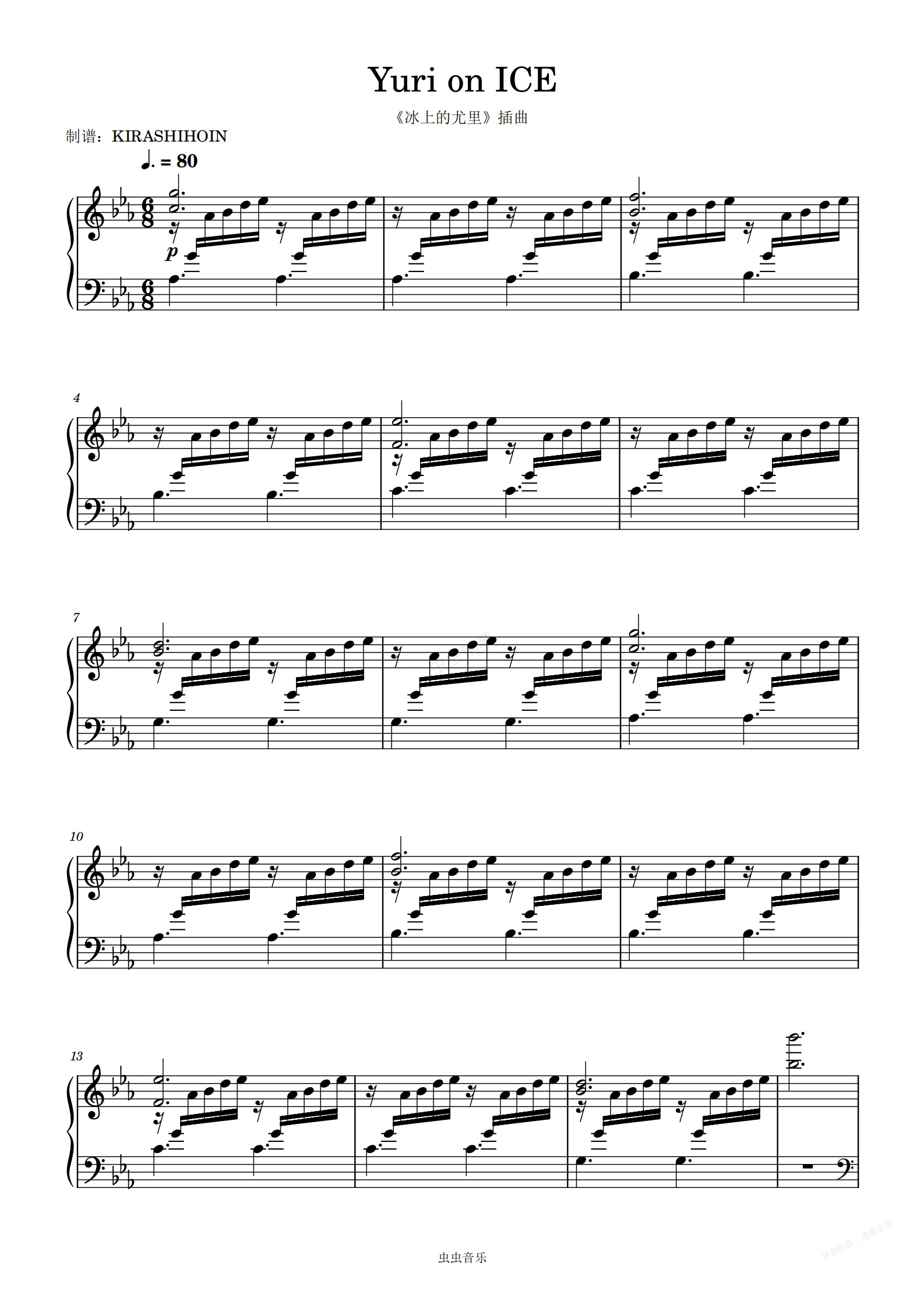 钢琴谱:Yuri on Ice