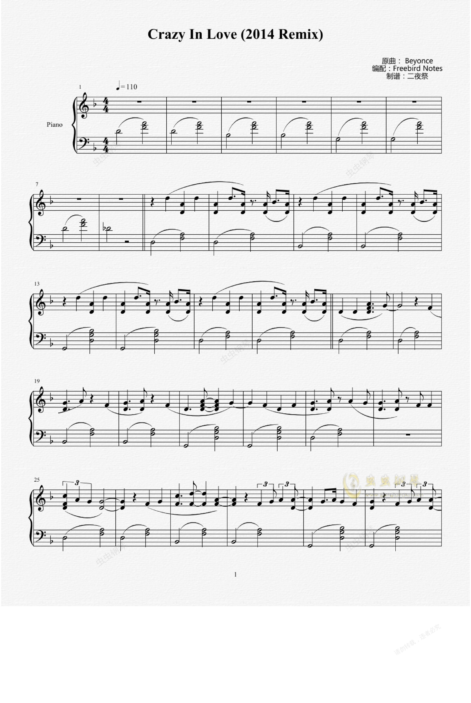 钢琴谱:Crazy In Love - Fifty Shades of Grey