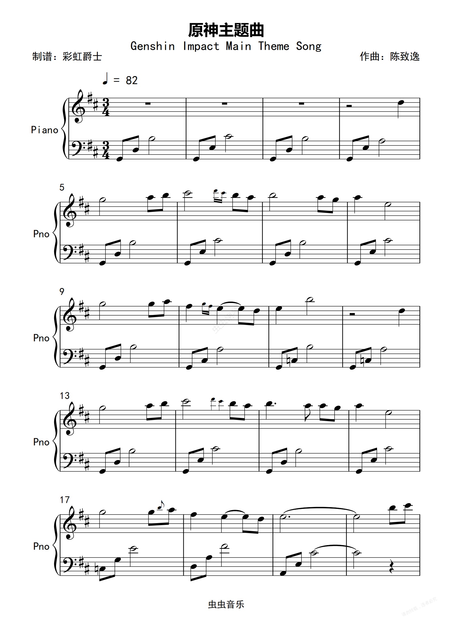 钢琴谱:Genshin Impact: Main Theme