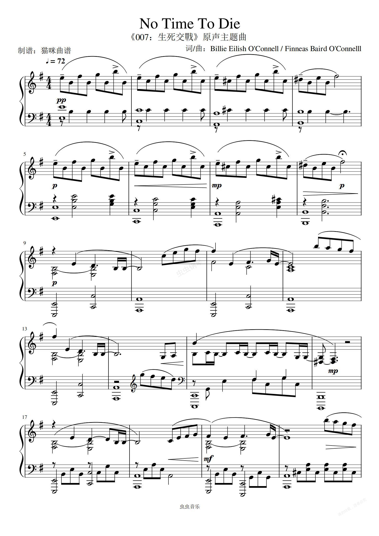 and print in PDF free sheet music for No Time To Die by 007 无暇赴死 钢琴谱下载