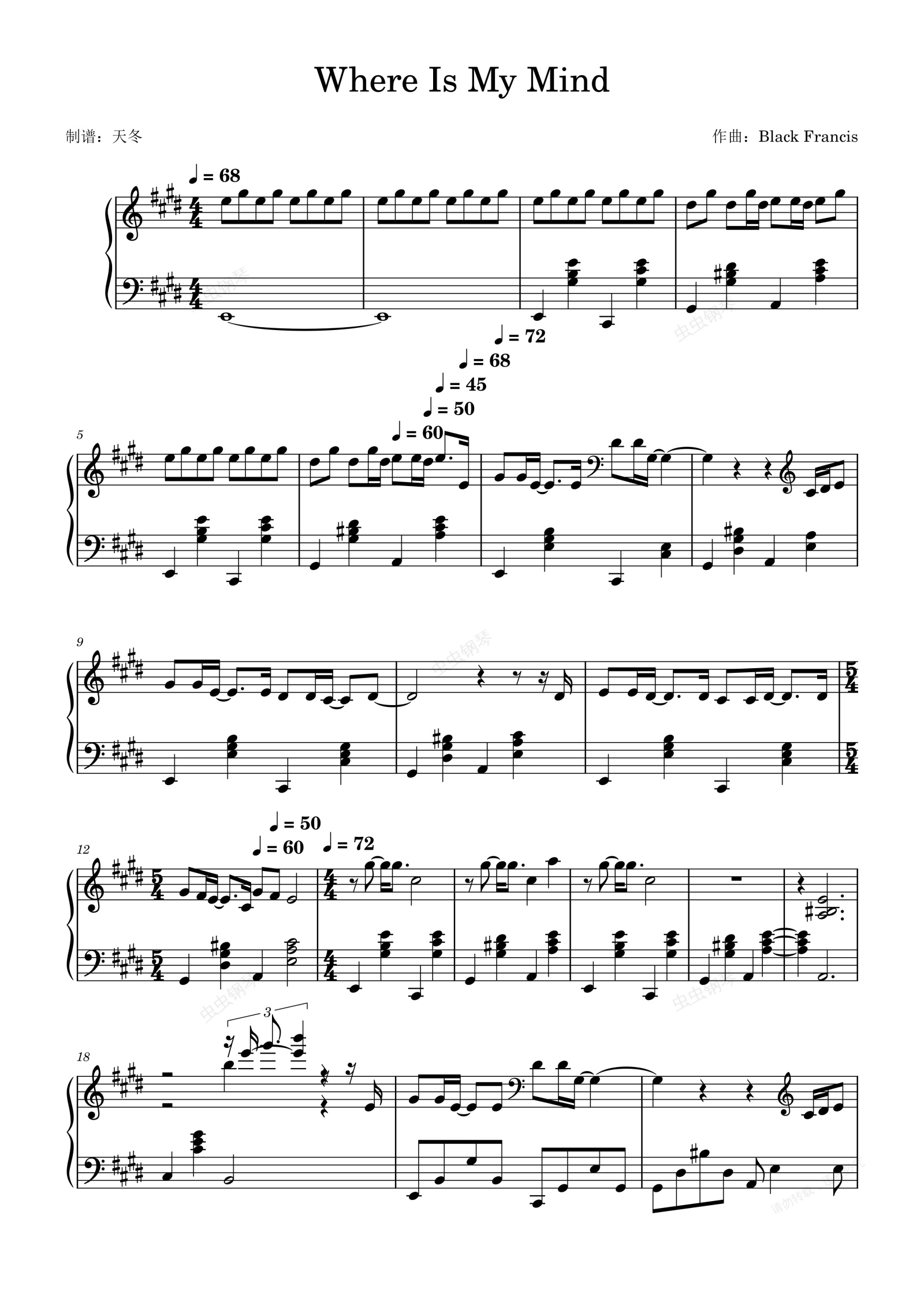 钢琴谱:Where Is My Mind? - The Pixies (Piano Solo)