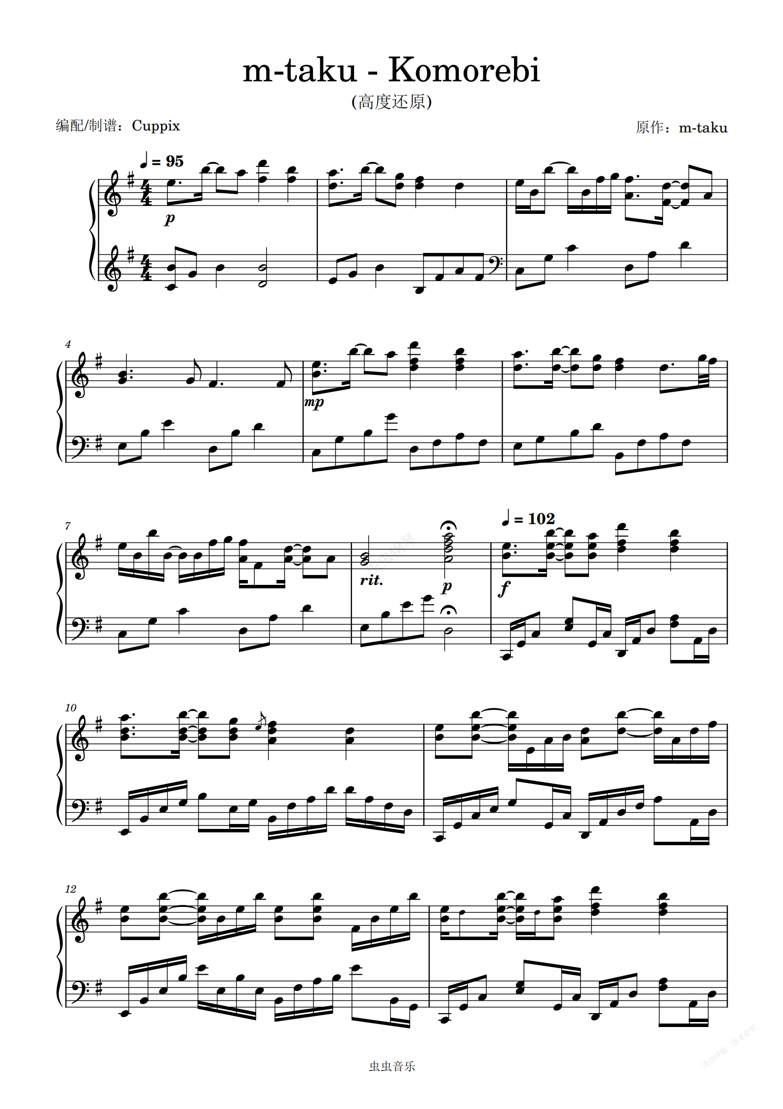 钢琴谱 下载 虫虫钢琴 and print in PDF sheet music for for piano (solo)