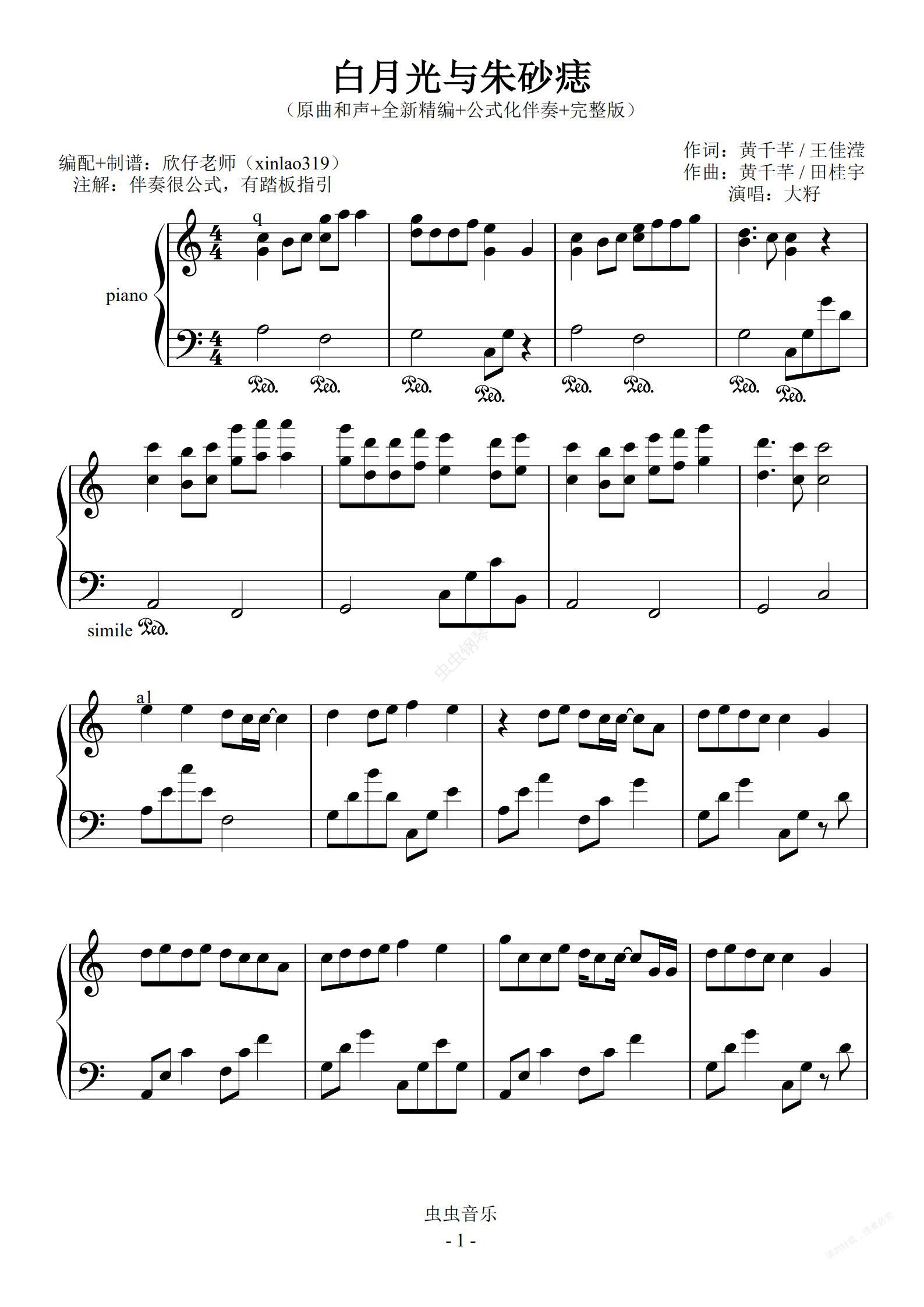 钢琴谱:白月光与朱砂痣 大籽-C调