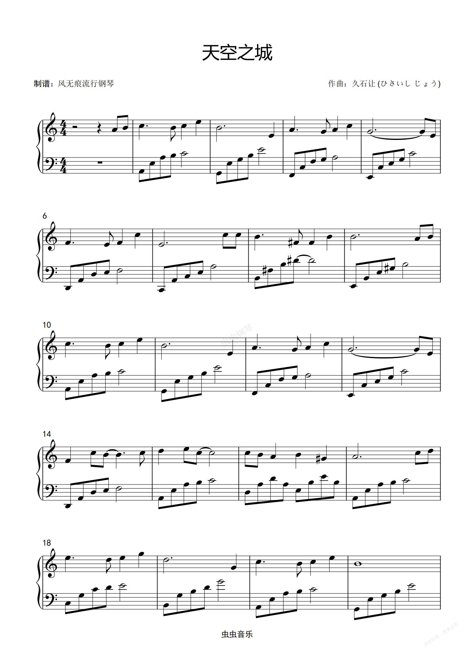 钢琴谱:Castle in the Sky:Carrying You /君をのせて by Joe Hisaishi (Easy Piano)