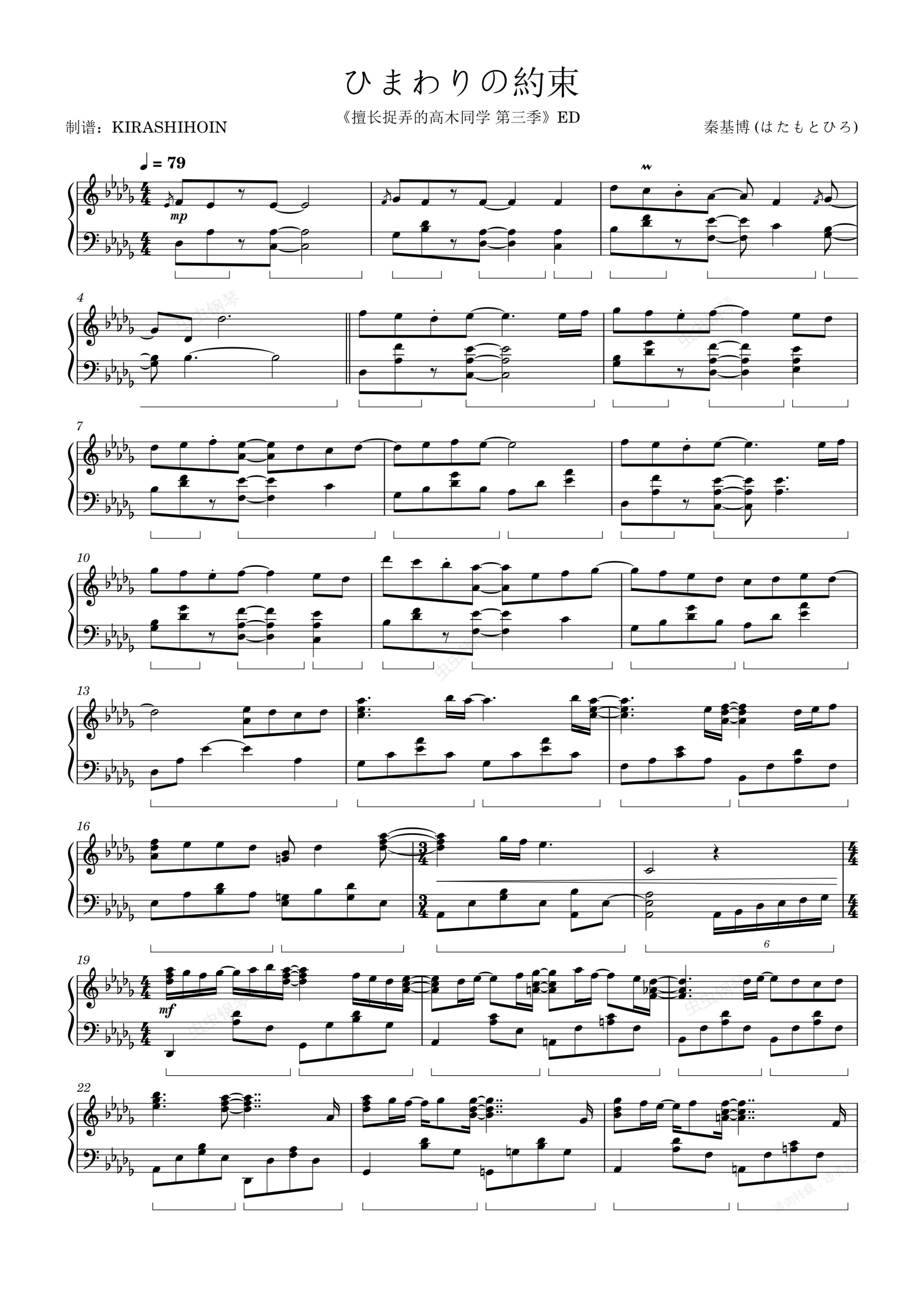 钢琴谱:ひまわりの約束/向日葵的约定(《擅长捉弄的高木同学 第三季》ED/片尾曲)- 高桥李依