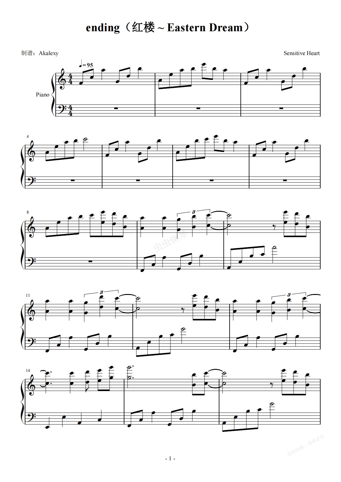 钢琴谱:ending(红楼 ~ Eastern Dream)