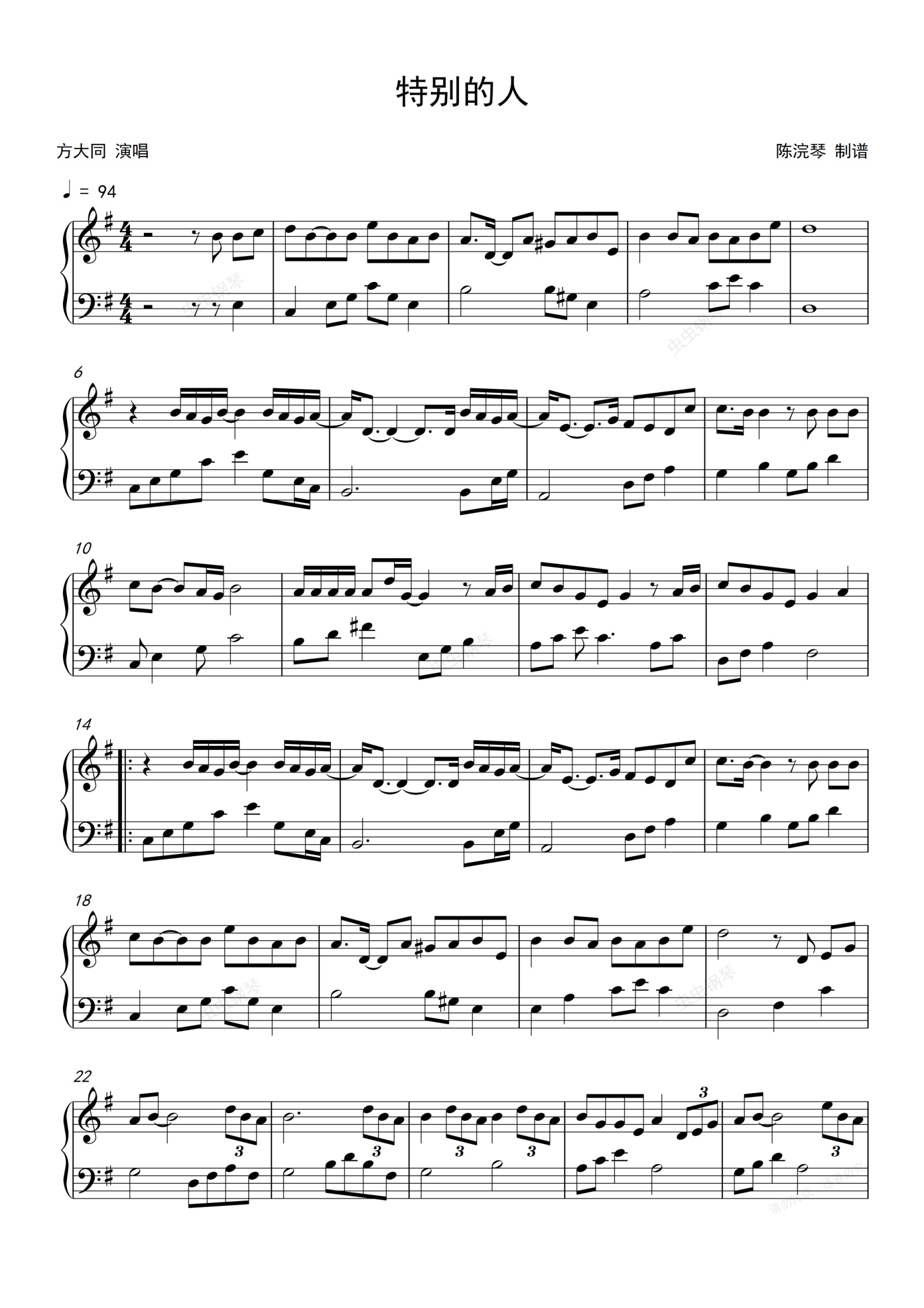 • 小城夏天钢琴谱_G调五线谱_BLI利比