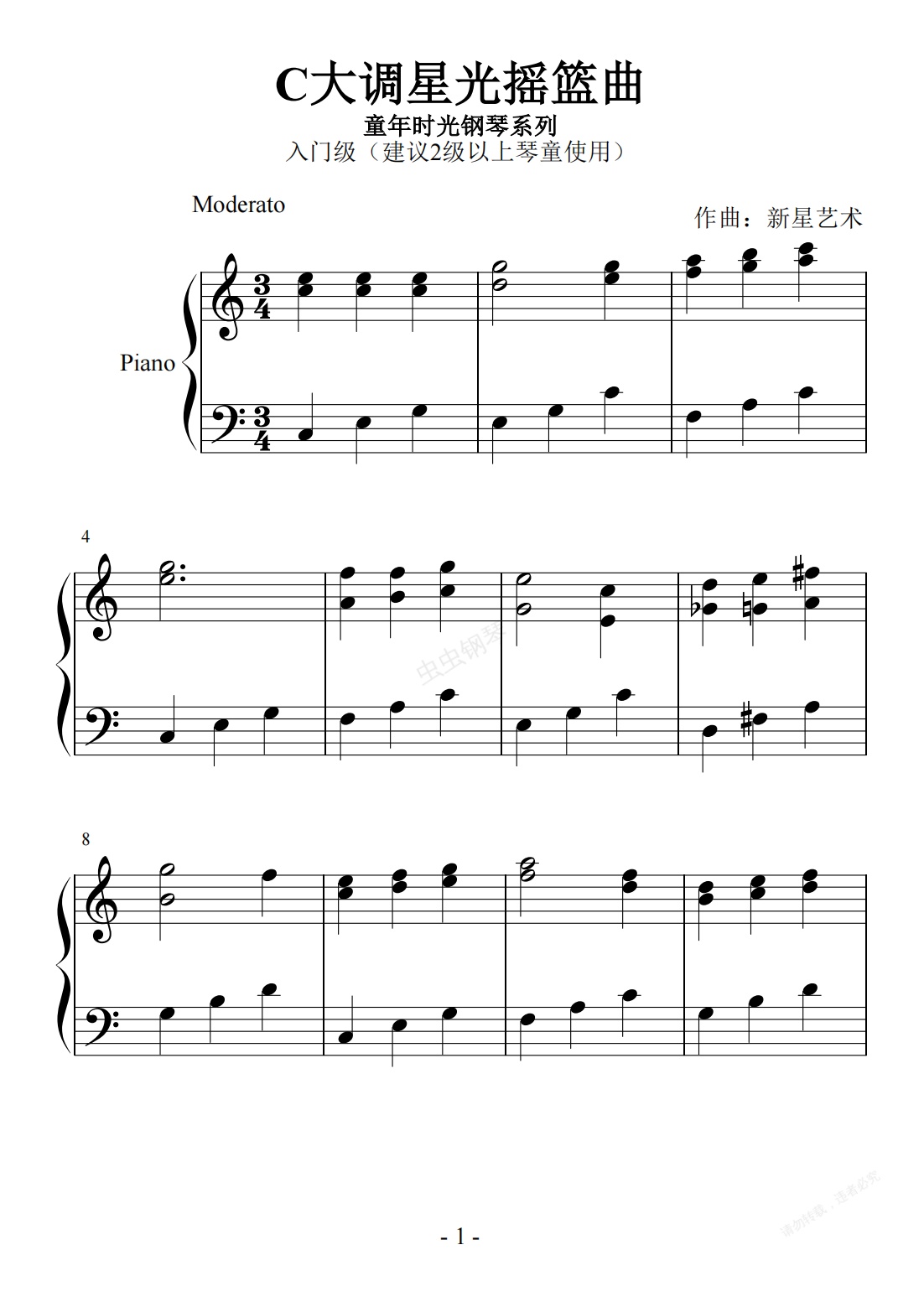 钢琴谱:C大调星光摇篮曲
