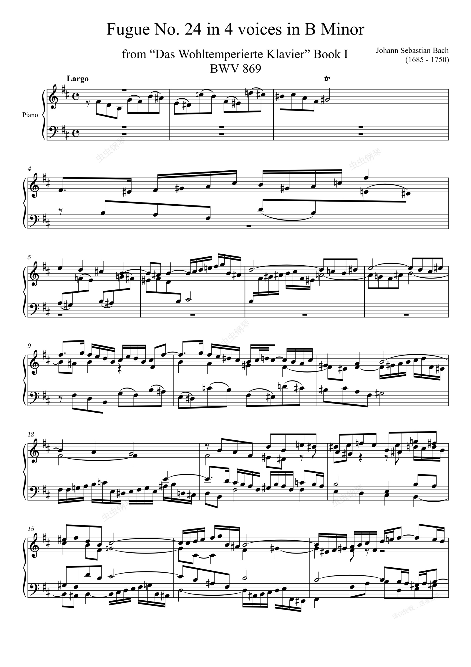 钢琴谱:Fugue No. 24 BWV 869 in B Minor