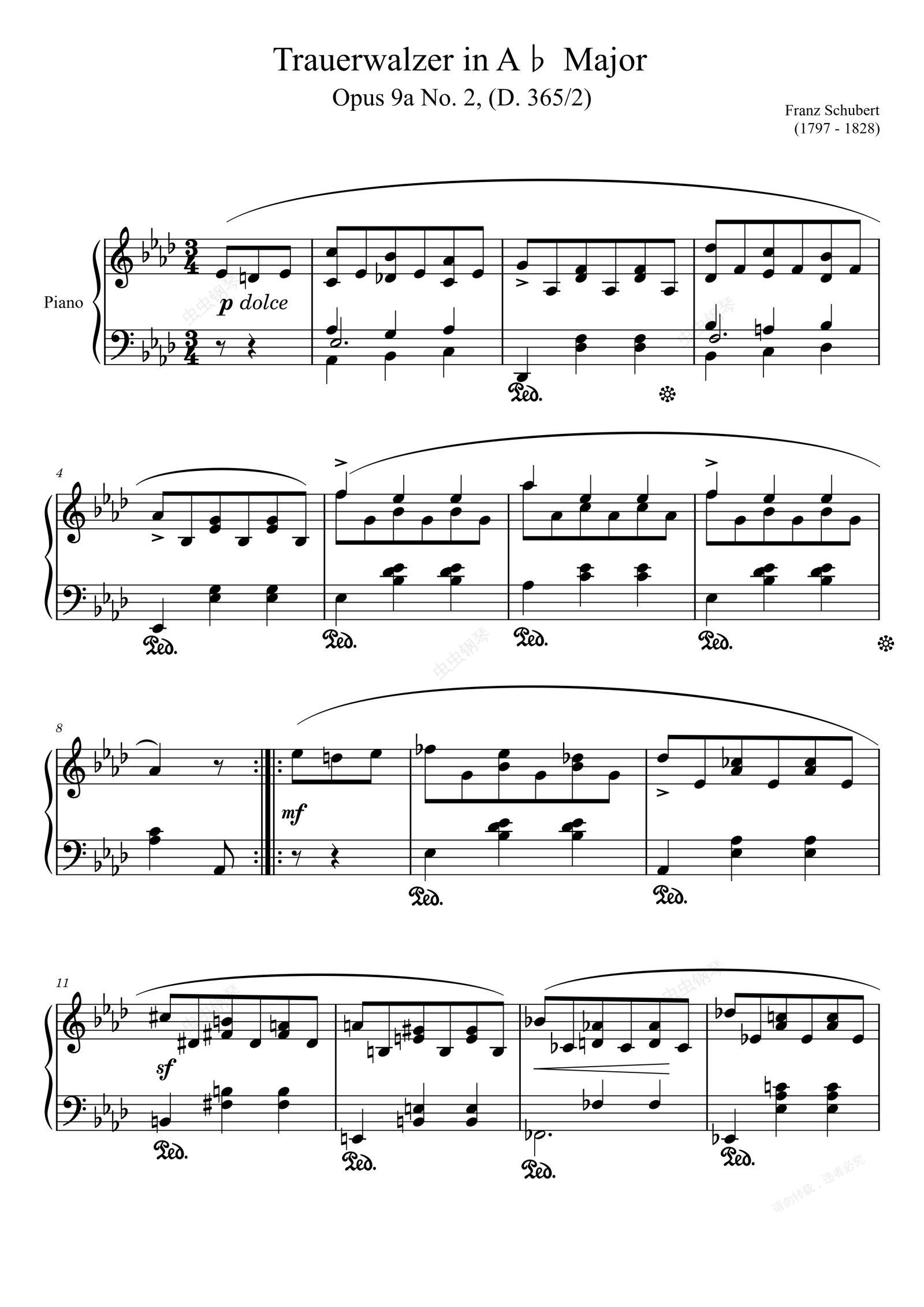 钢琴谱:Trauerwalzer Opus 9a No. 2 in A♭ Major