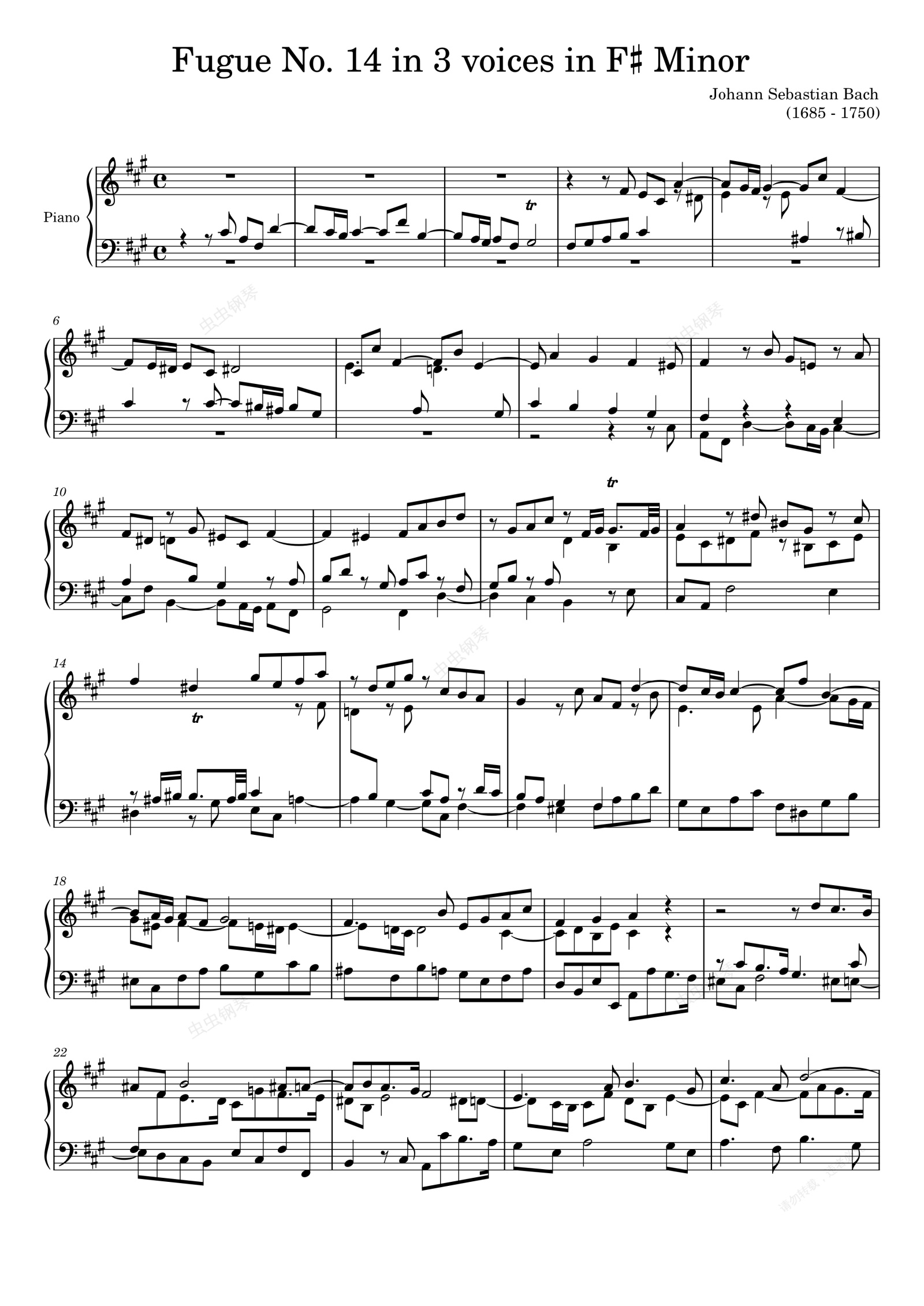 钢琴谱:Fugue No. 14 BWV 883 in F♯ Minor