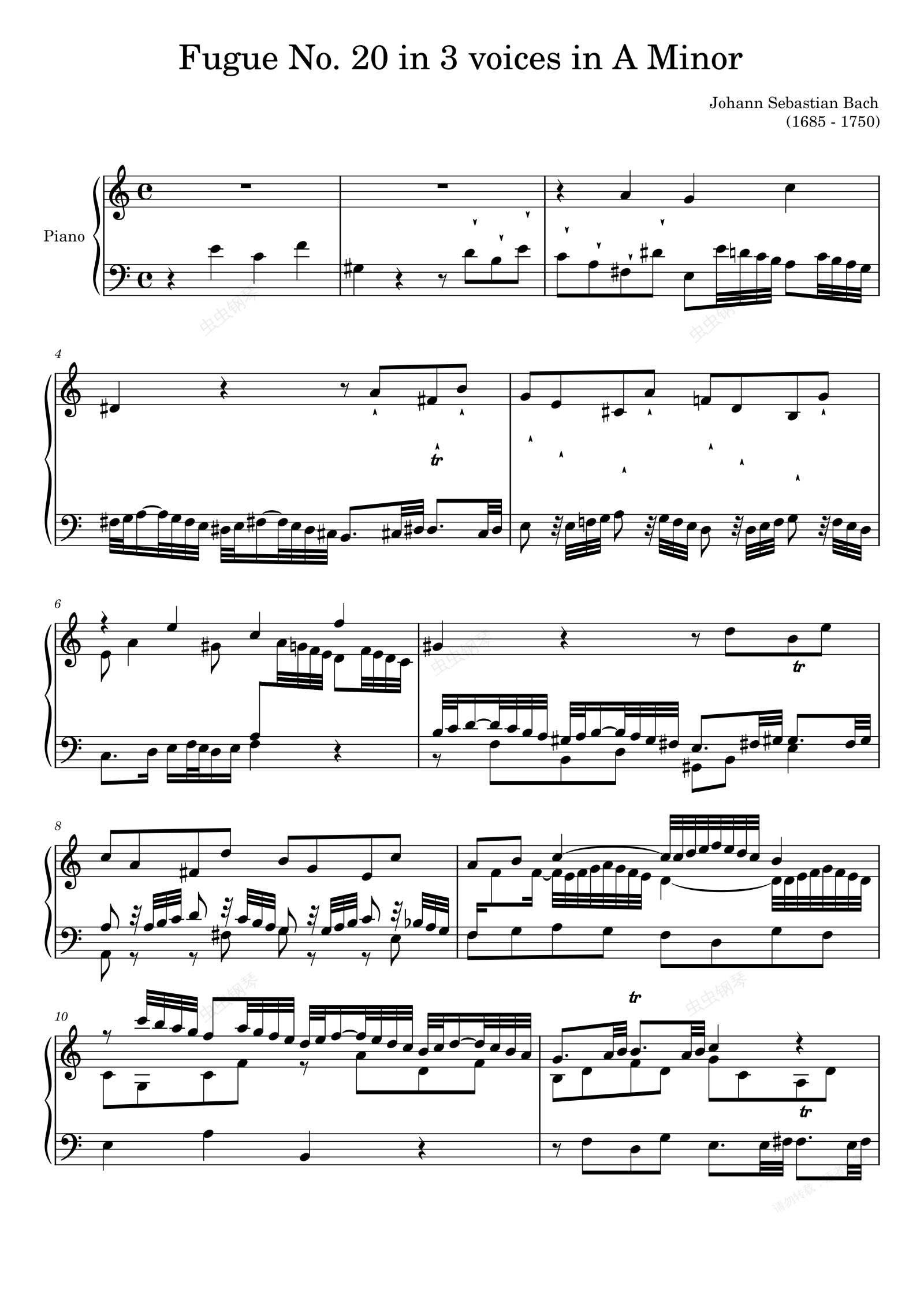 钢琴谱:Fugue No. 20 BWV 889 in A Minor