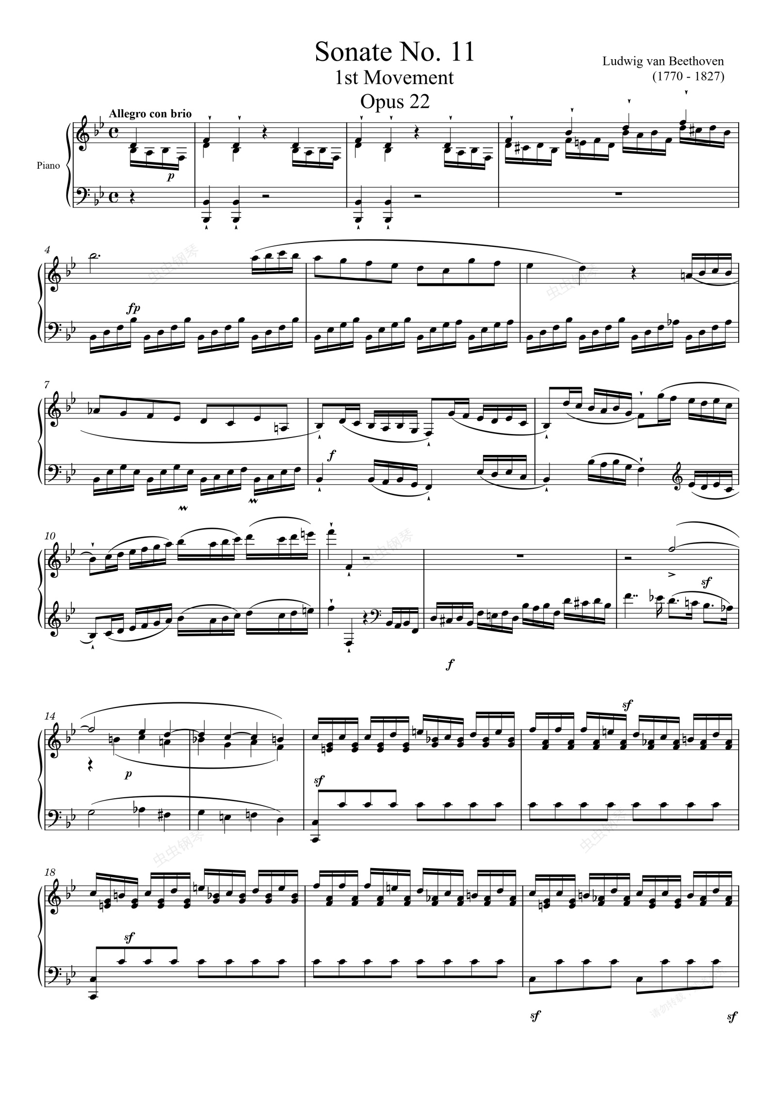 钢琴谱:Sonate No. 11, 1st Movement