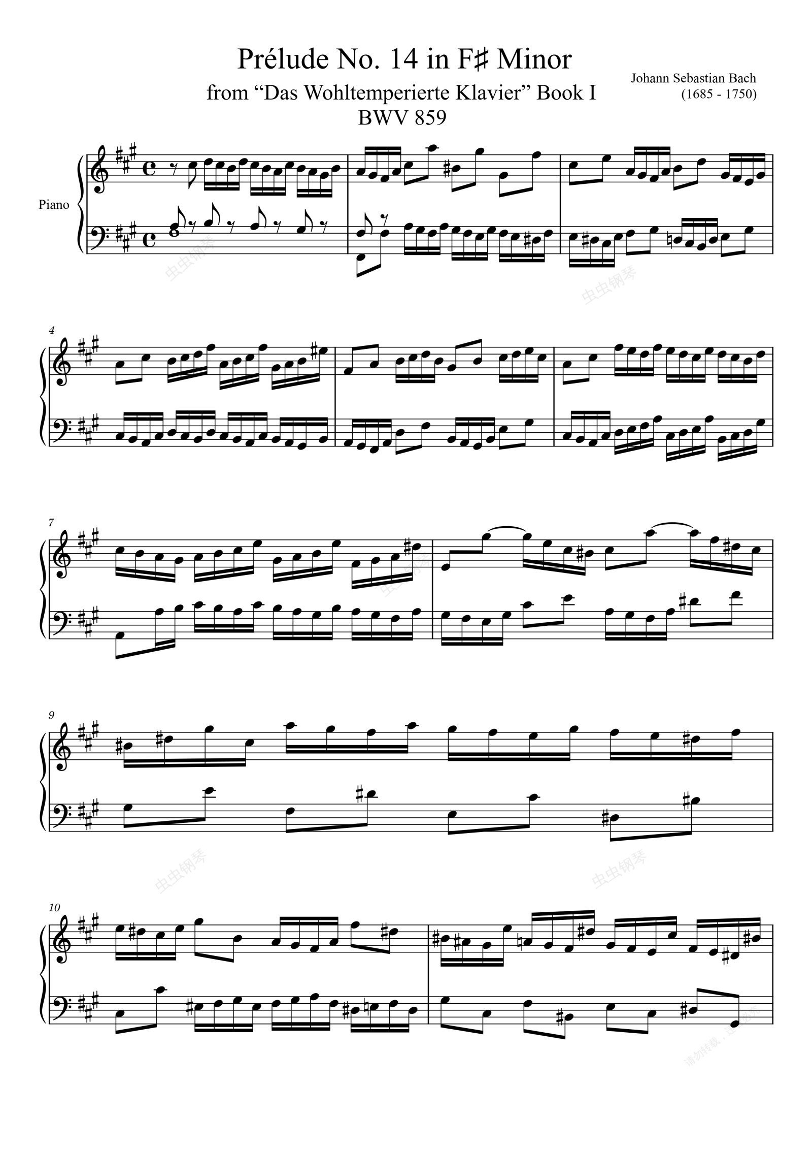 钢琴谱:Prélude No. 14 BWV 859 in F♯ Minor