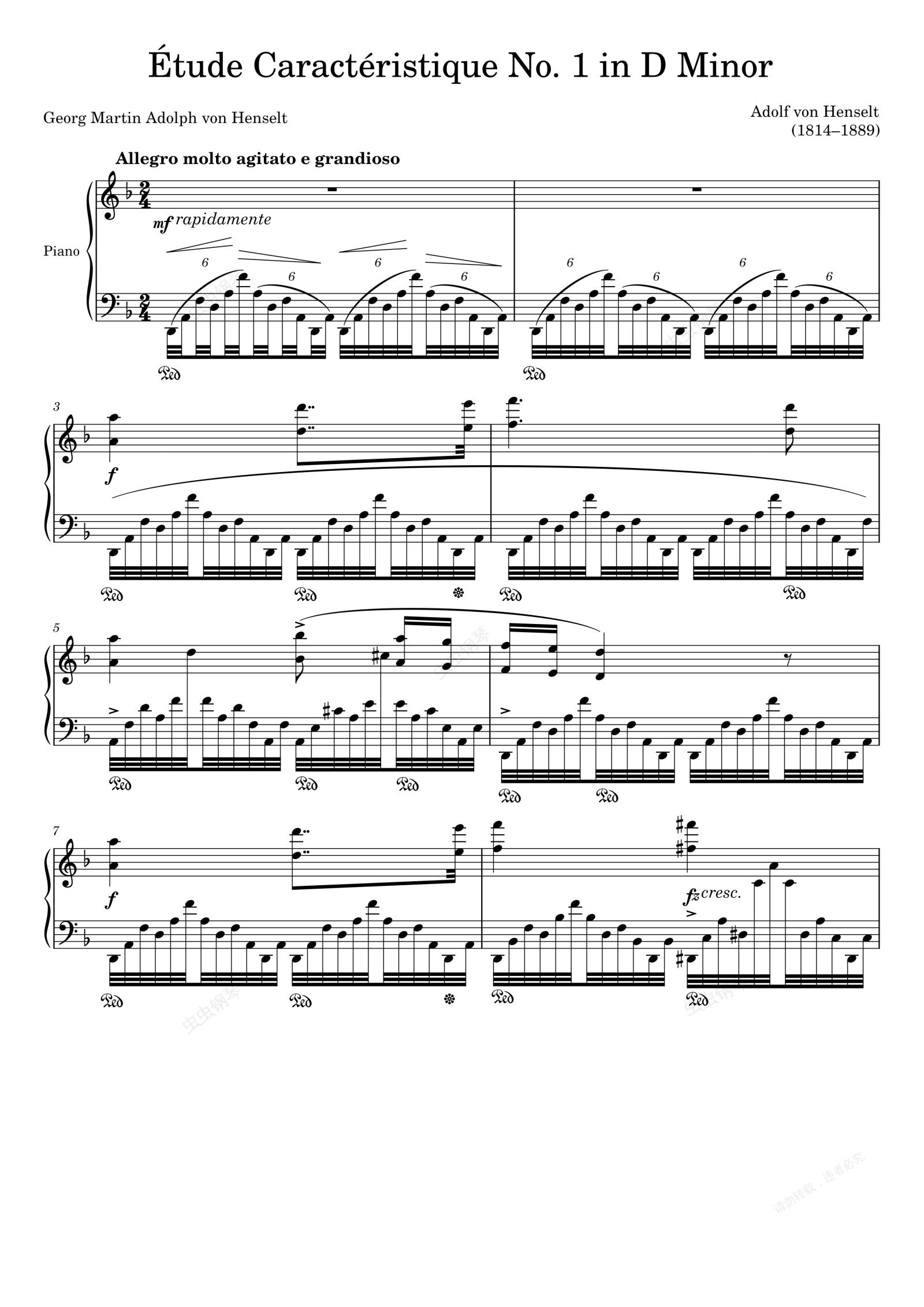 钢琴谱:Étude Caractéristique Opus 2 No. 1 in D Minor