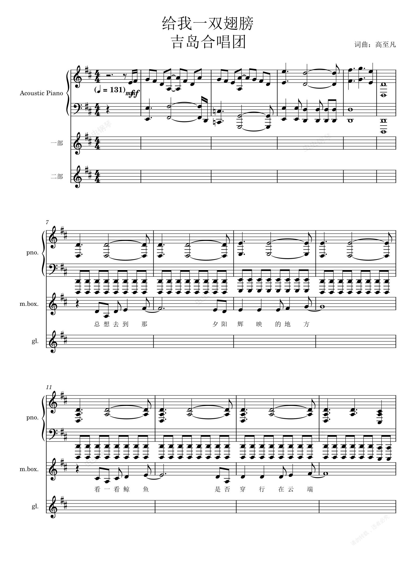 钢琴谱:吉岛合唱团《给我一双翅膀》
