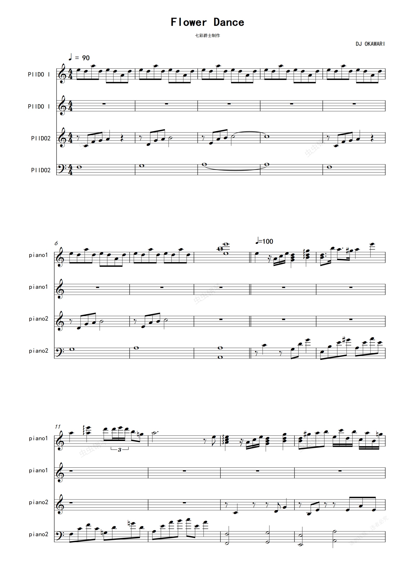 钢琴谱:C调 Flower Dance 四手联弹 四手联弹 花之舞 DJ Okawari