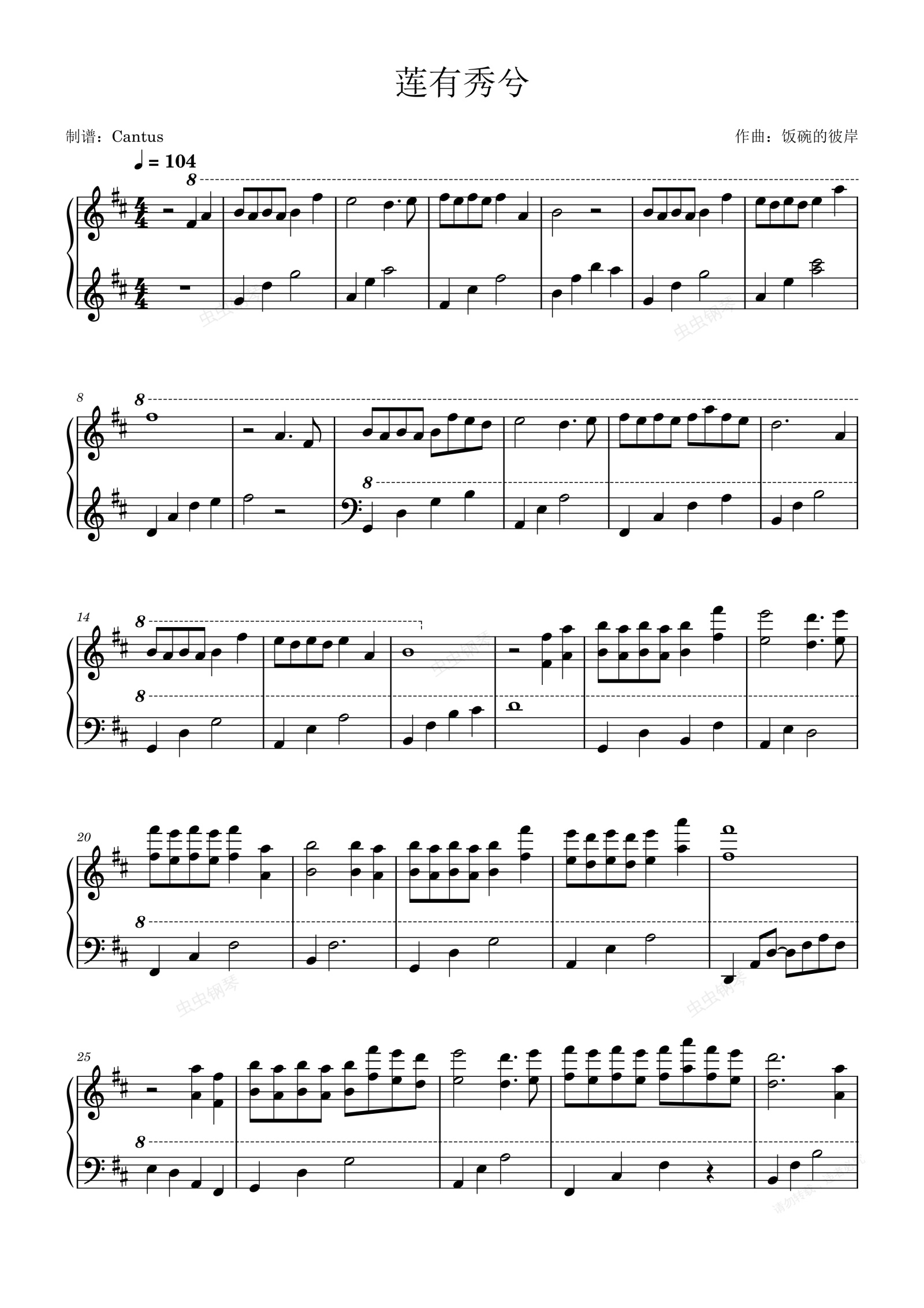 钢琴谱:莲有秀兮-饭碗的彼岸