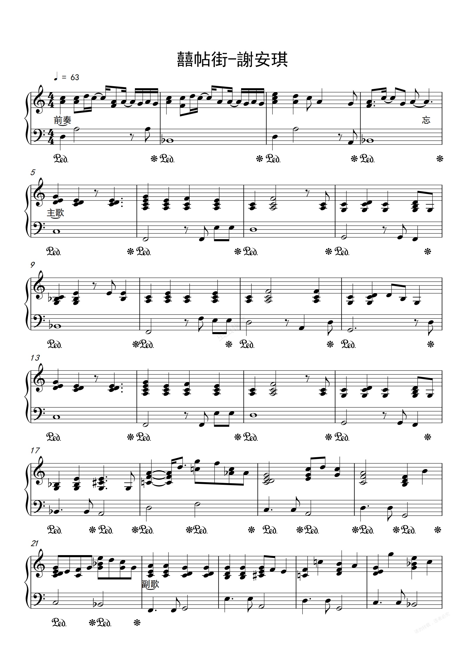 钢琴谱:喜帖街 C调 leo编配