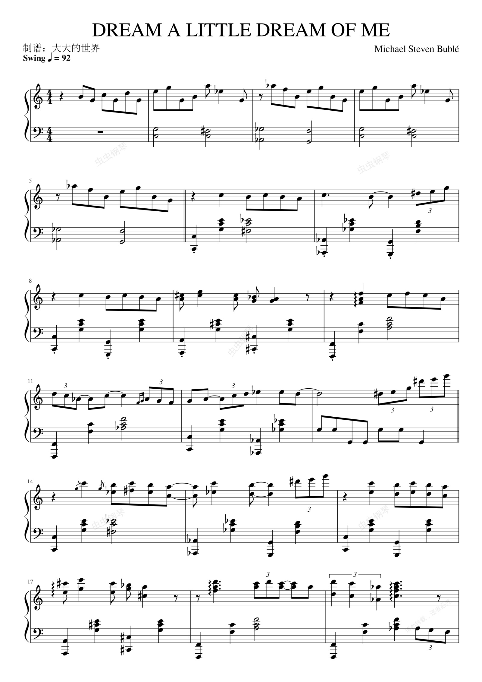 钢琴谱:DREAM A LITTLE DREAM OF ME-Michael Steven Bublé