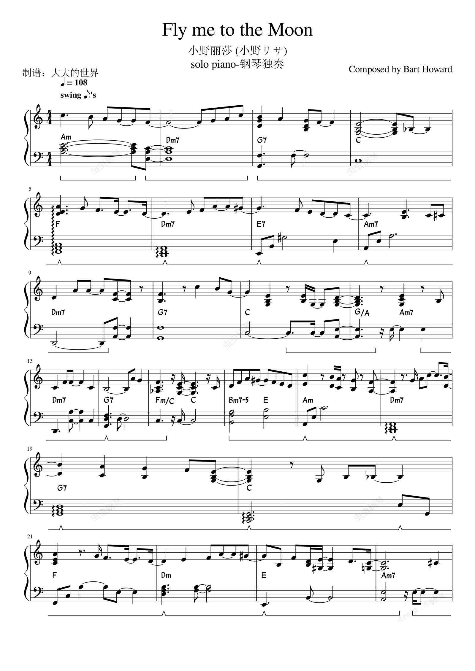 钢琴谱:Fly me to the Moon-小野丽莎 (小野リサ)