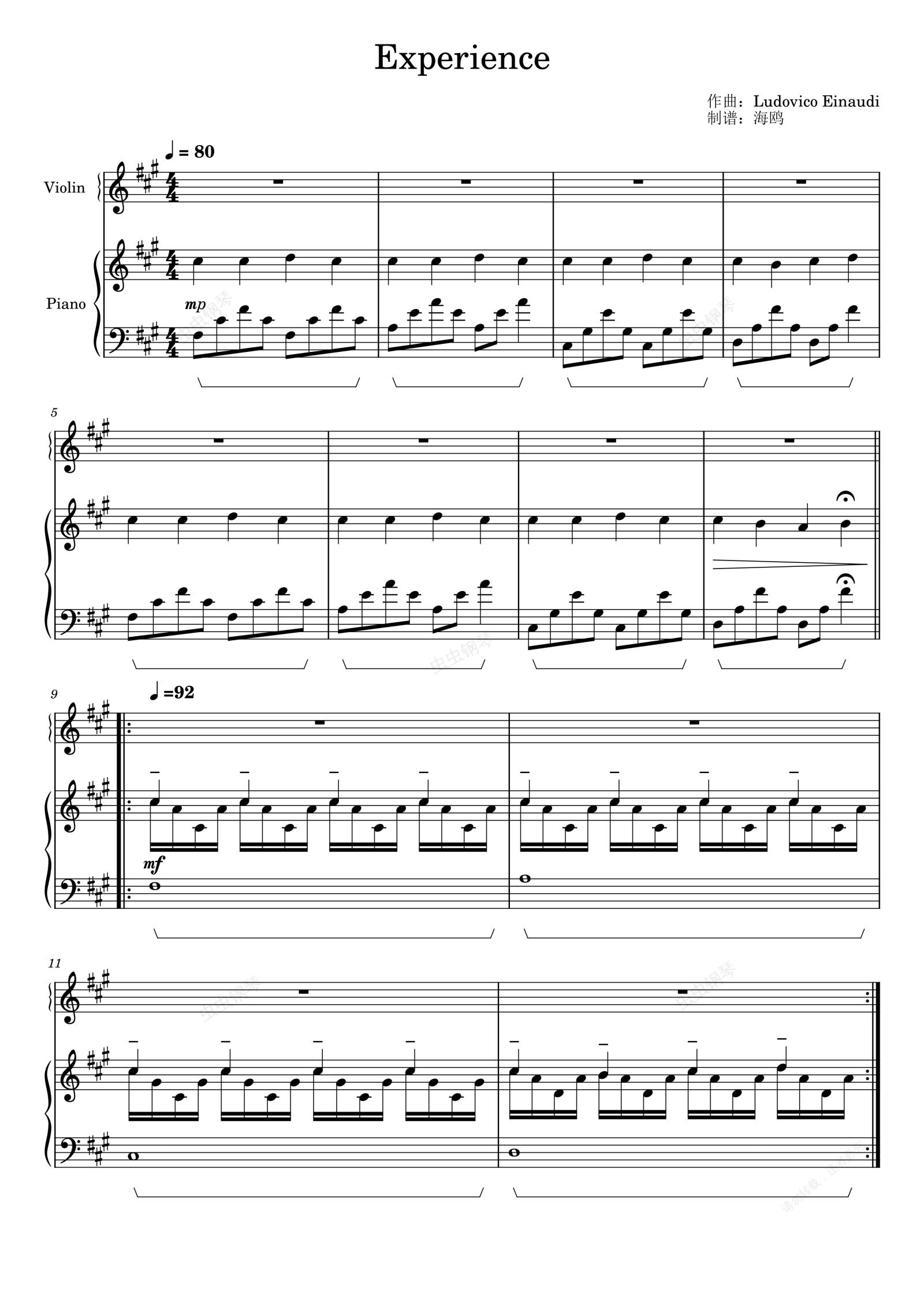 钢琴谱:Experience二重奏-Ludovico Einaudi