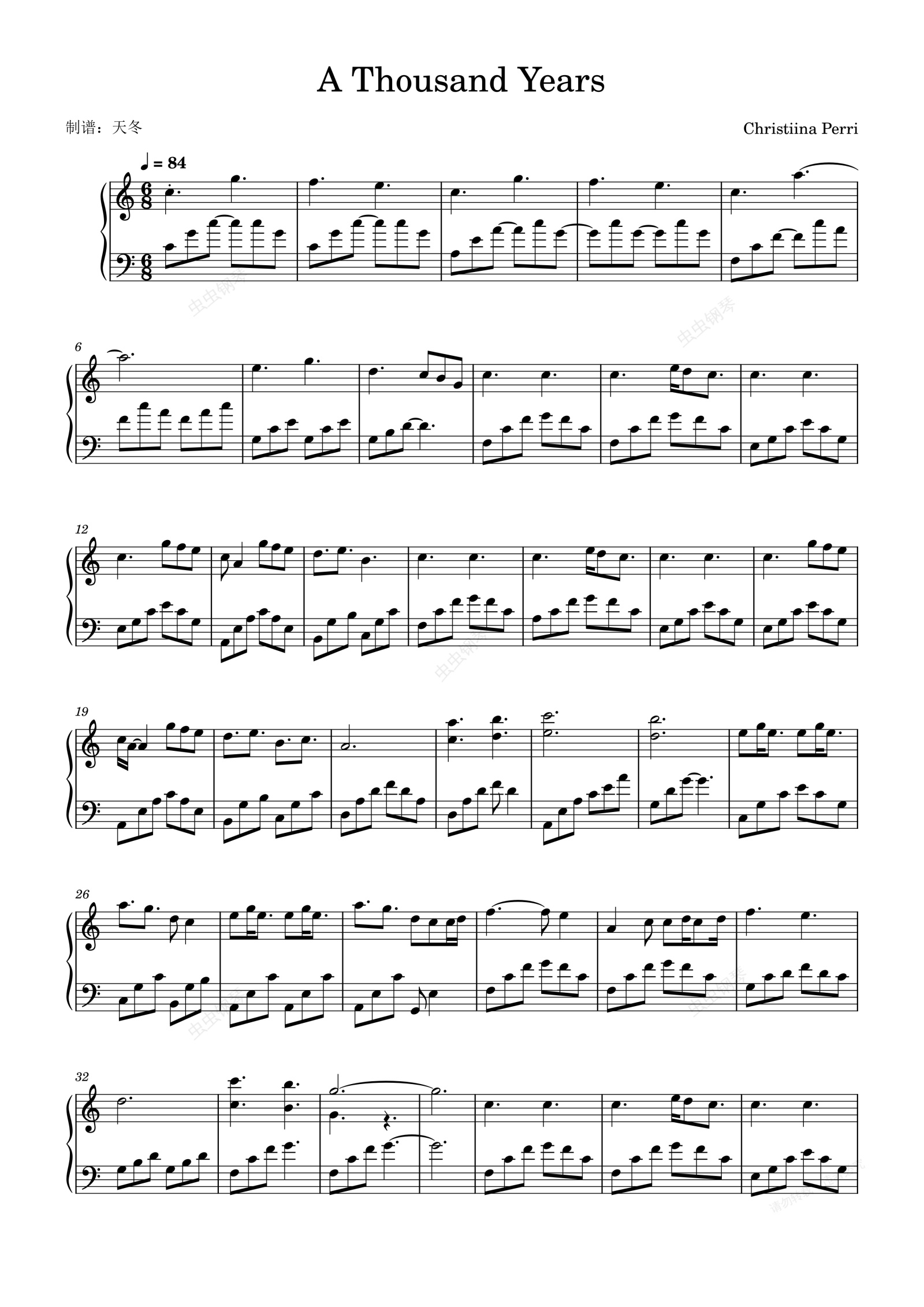 钢琴谱:A Thousand Years电影《暮光之城》插曲OST