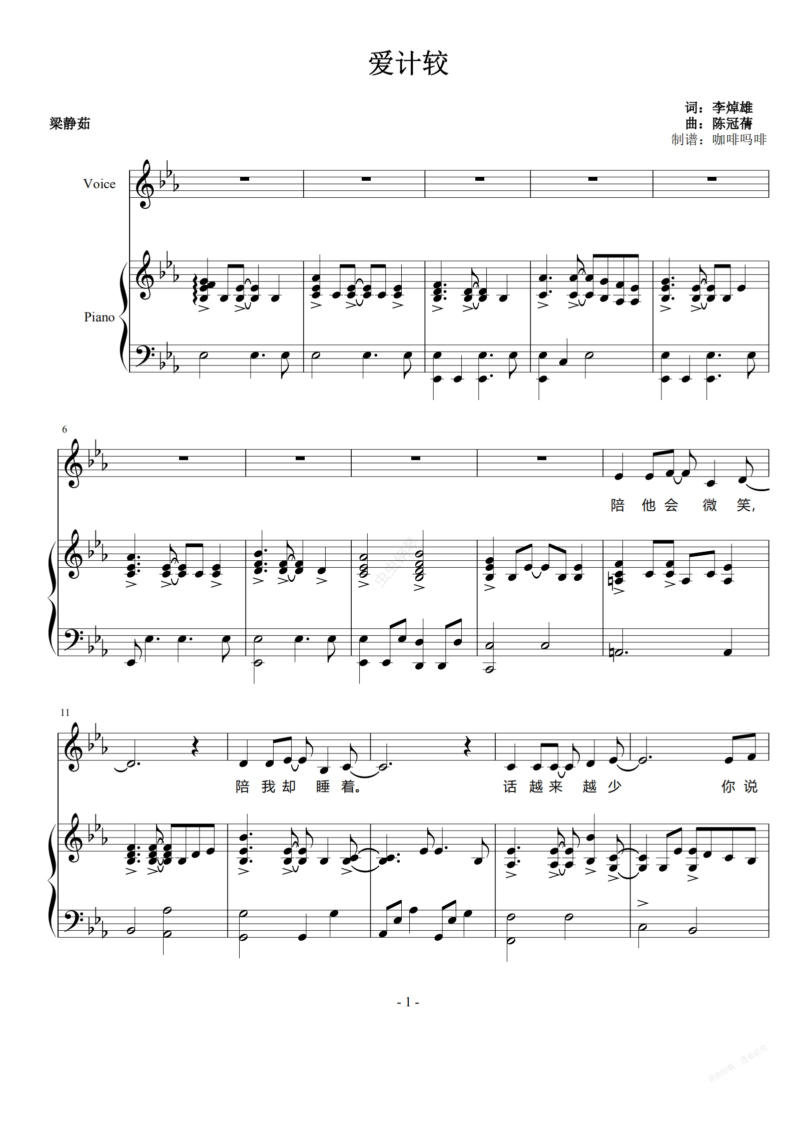 钢琴谱:爱计较-梁静茹 钢琴伴奏谱