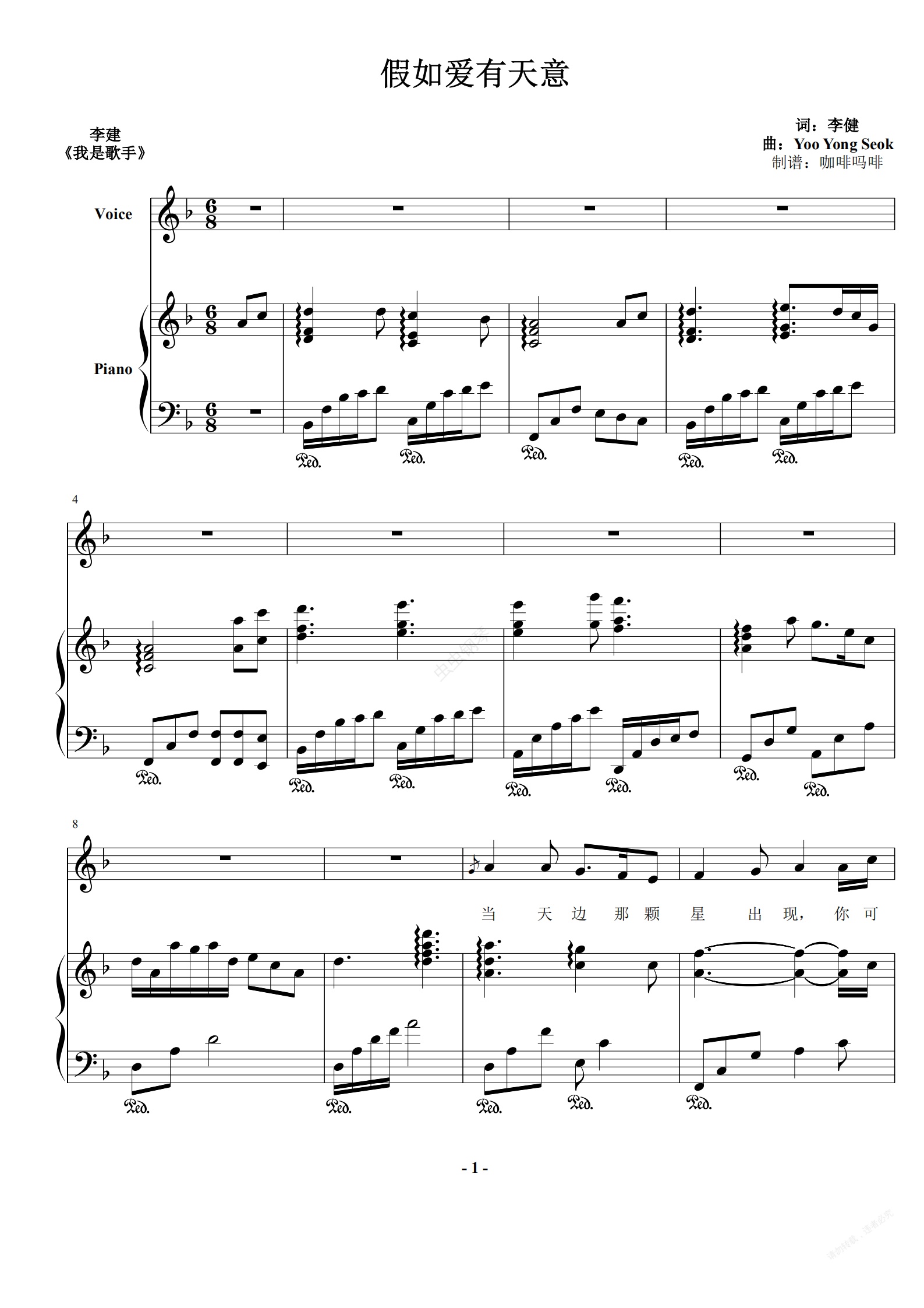 钢琴谱:假如爱有天意-李健 钢琴伴奏谱