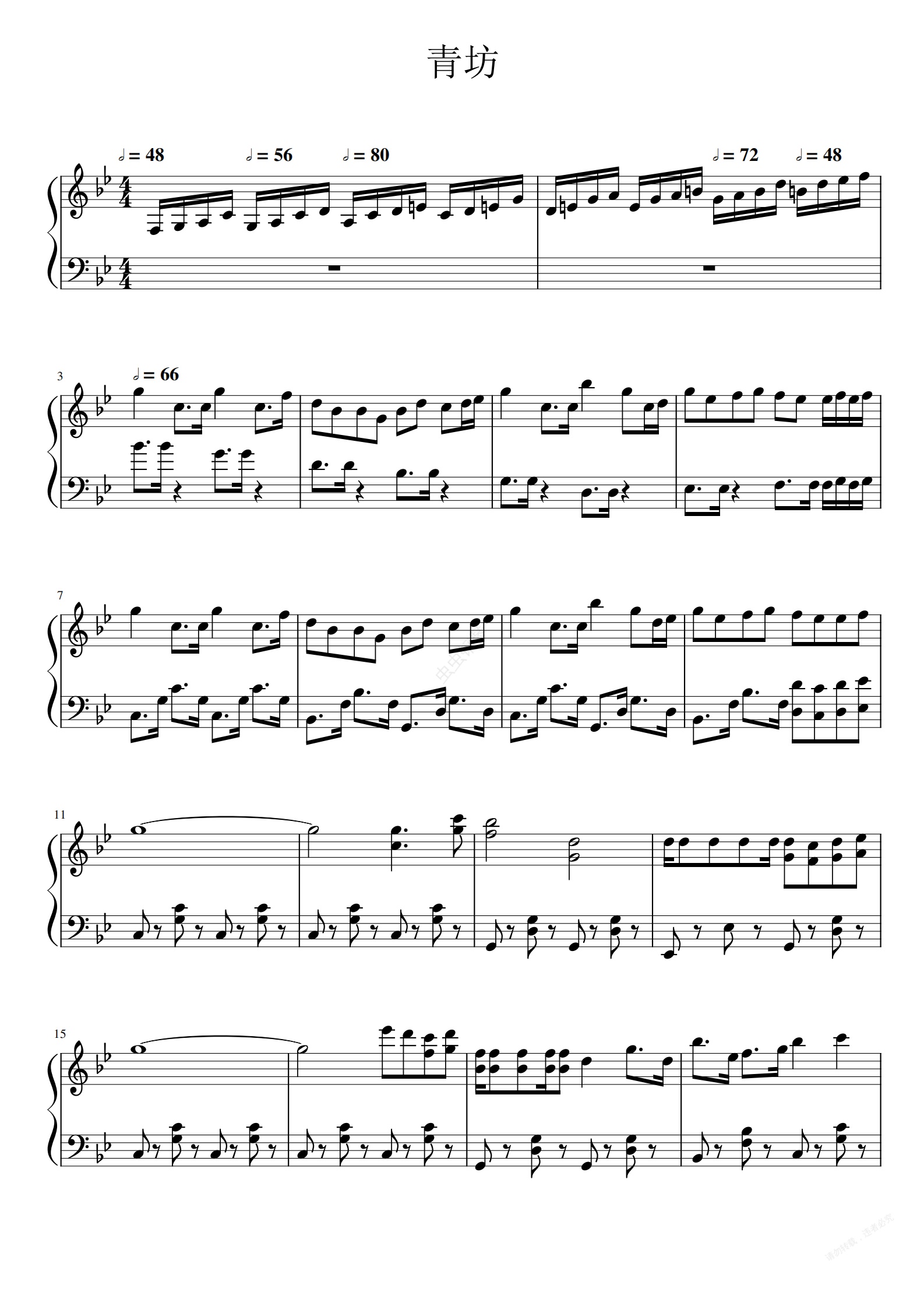 钢琴谱:青坊