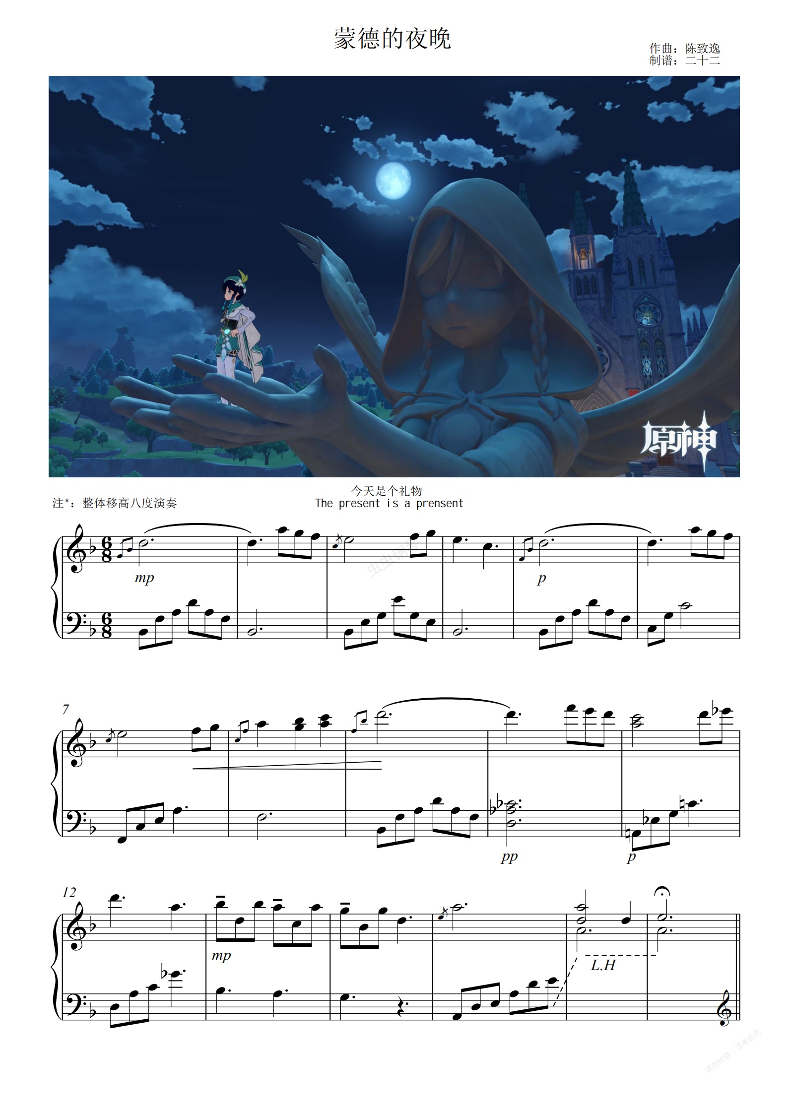 钢琴谱:蒙德的夜晚 - 沁心灵动版