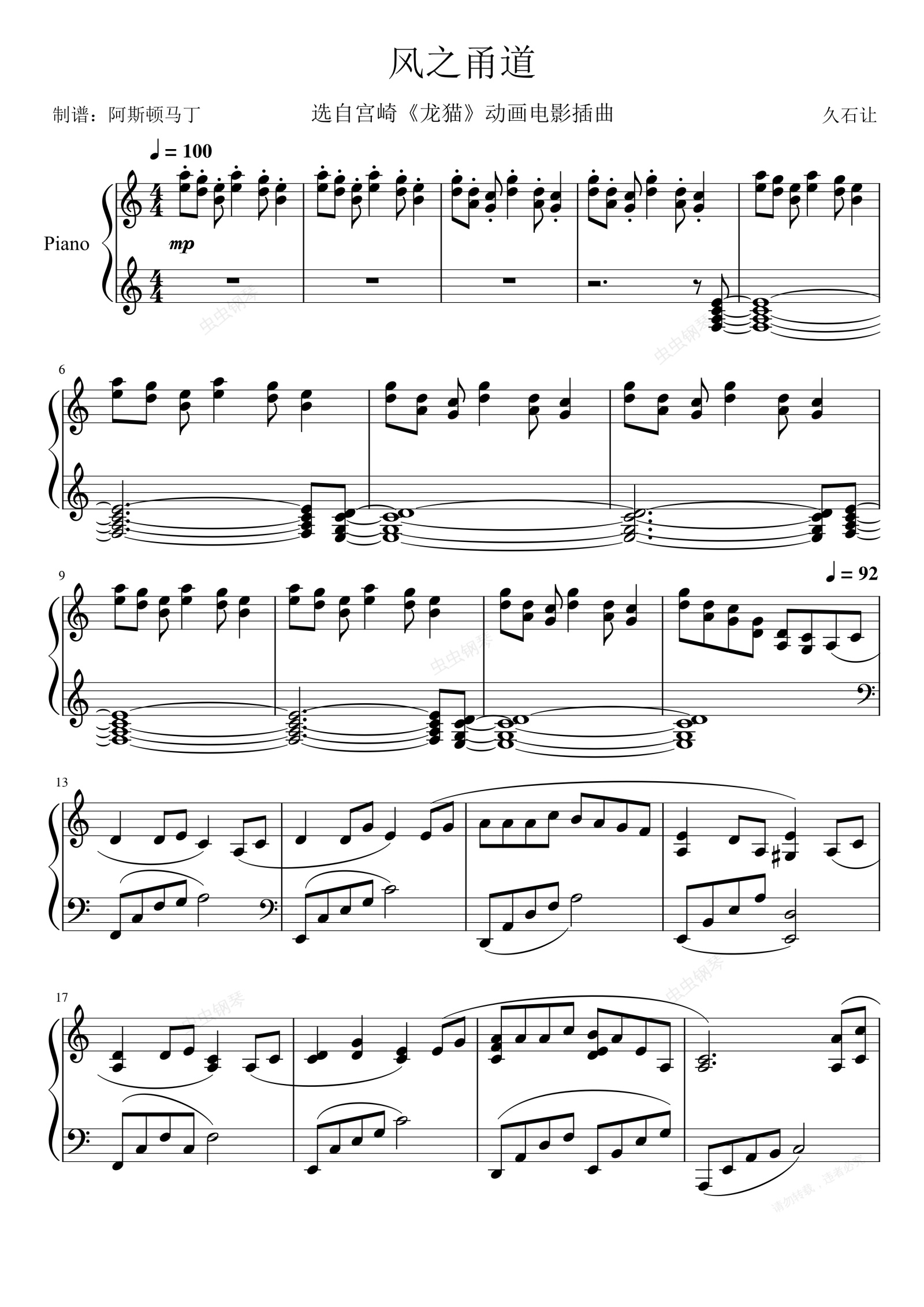 风之甬道 - 钢琴谱(風のとおり道 The Wind Forest)钢琴独奏版