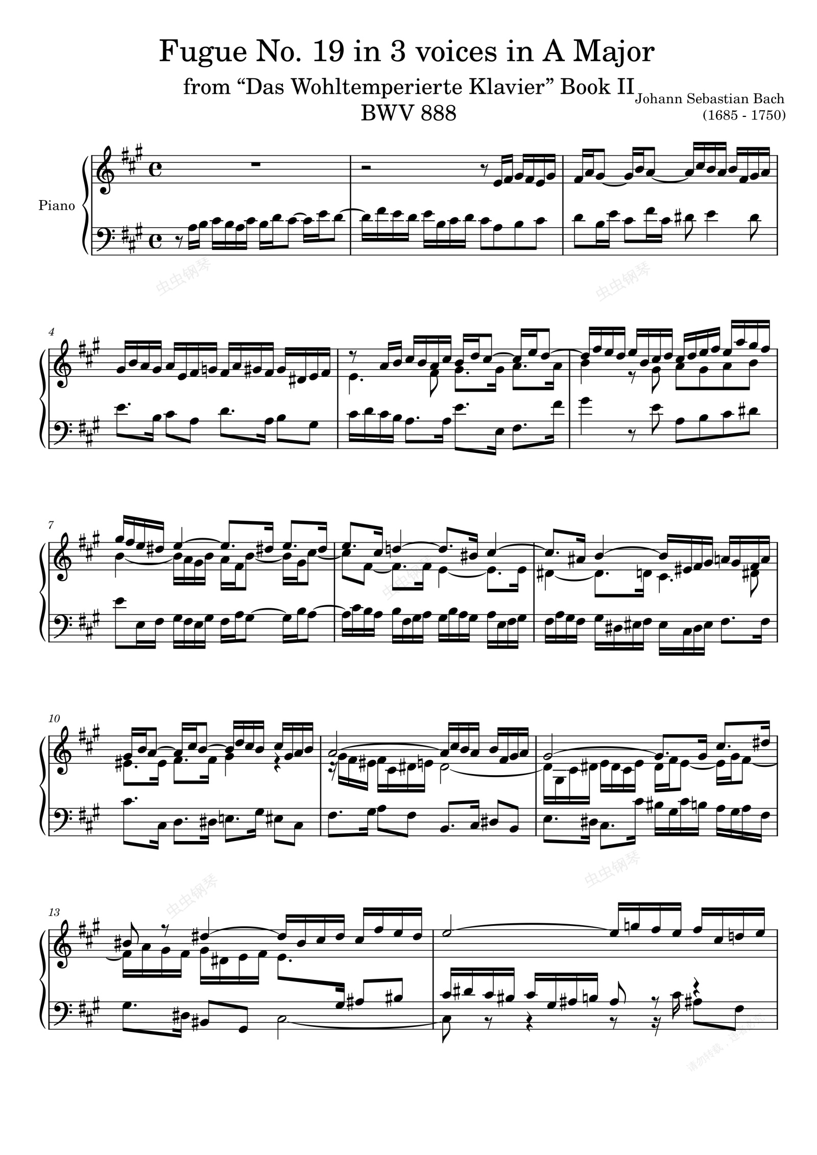 钢琴谱:Fugue No. 19 BWV 888 in A Major