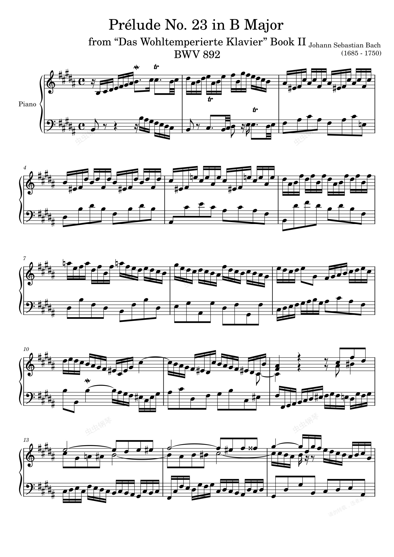 钢琴谱:Prélude No. 23 BWV 892 in B Major