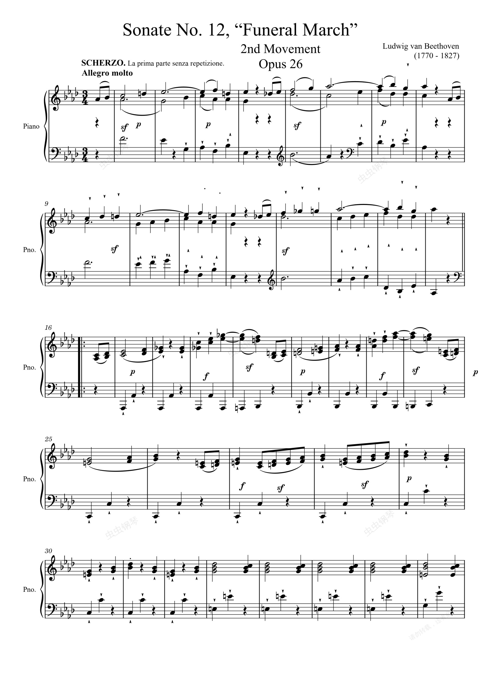 钢琴谱:Sonate No. 12, “Funeral March” 2nd Movement