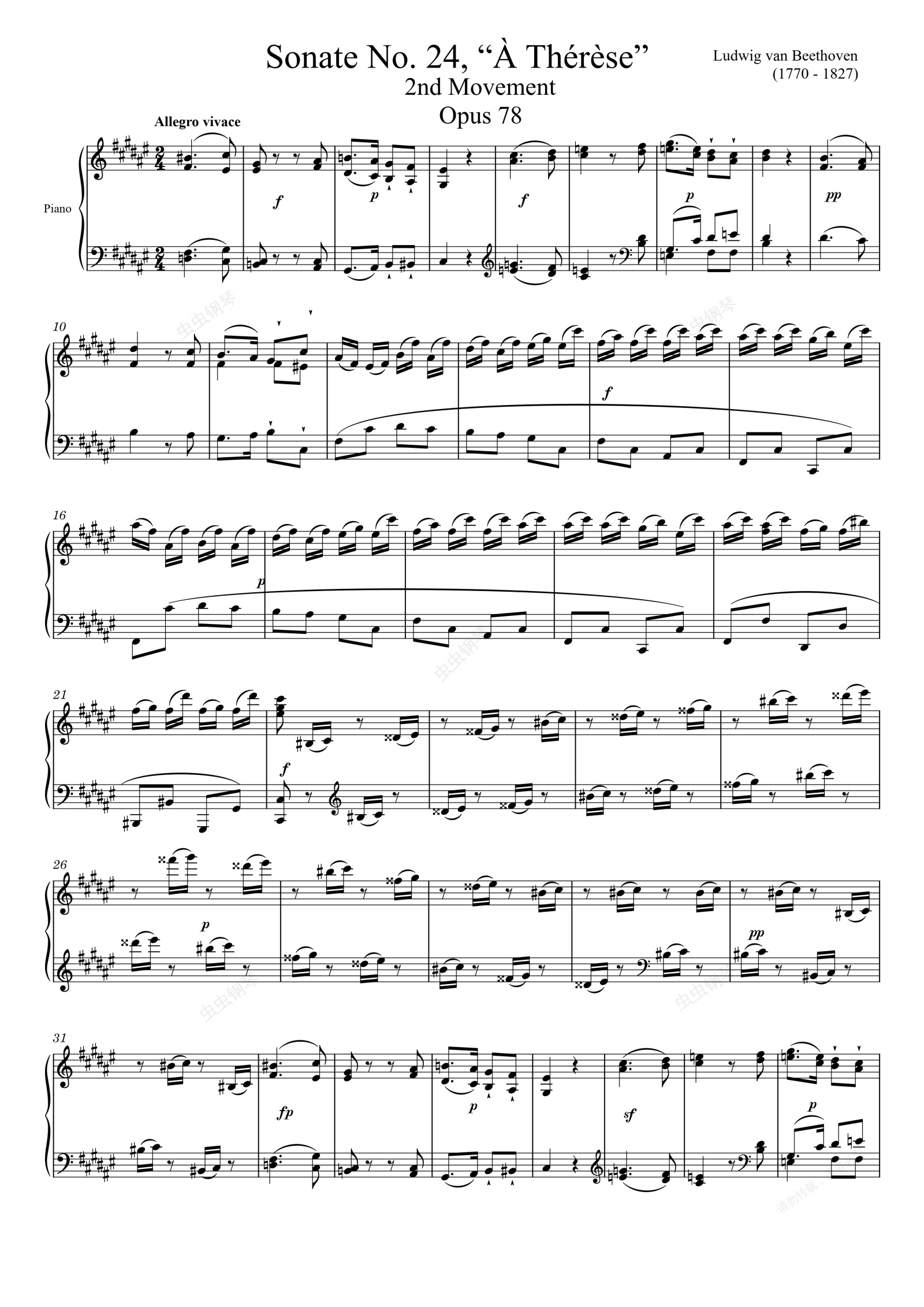 钢琴谱:Sonate No. 24, “À Thérèse”, 2nd Movement