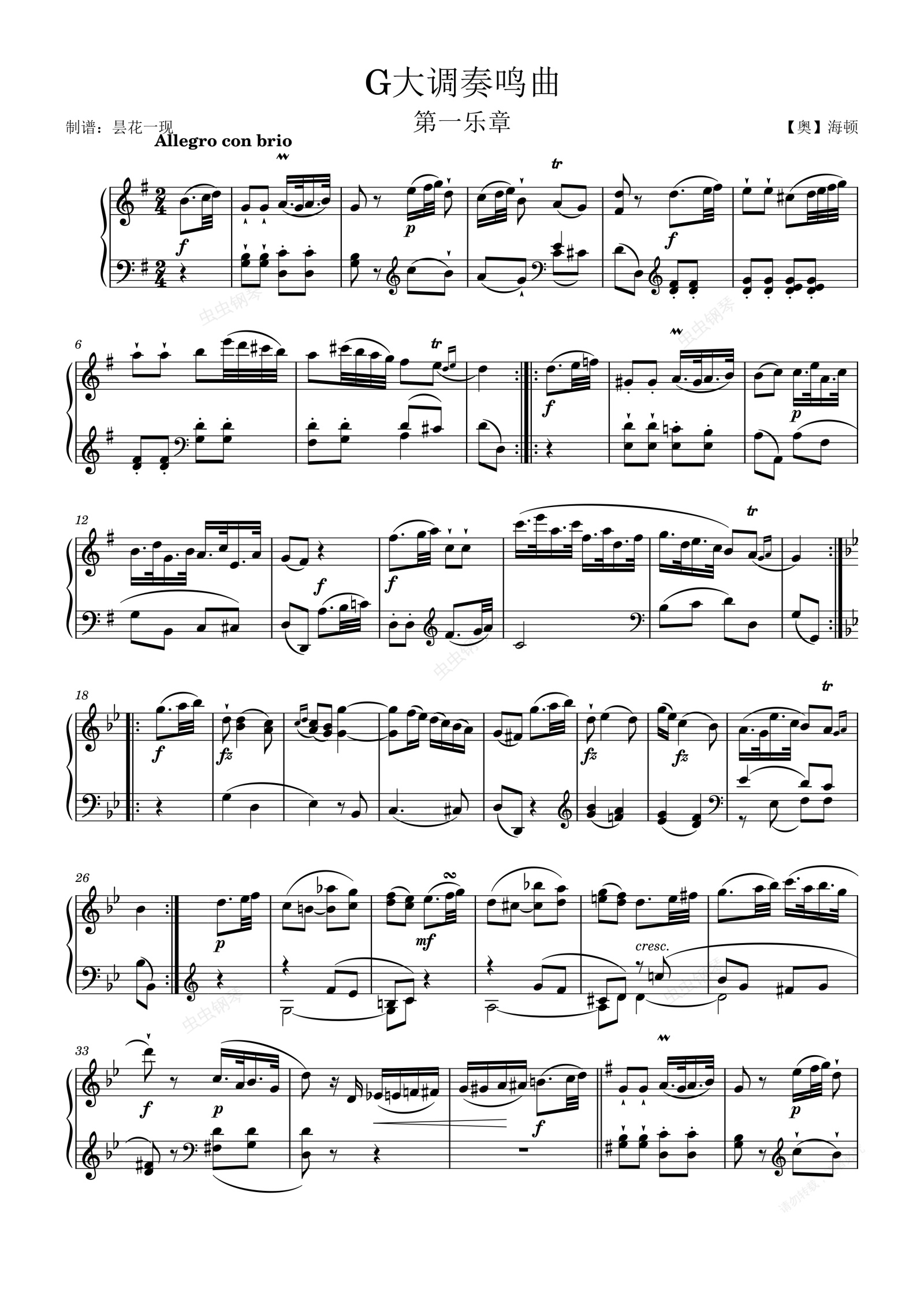 钢琴谱:G大调奏鸣曲第一乐章 海顿