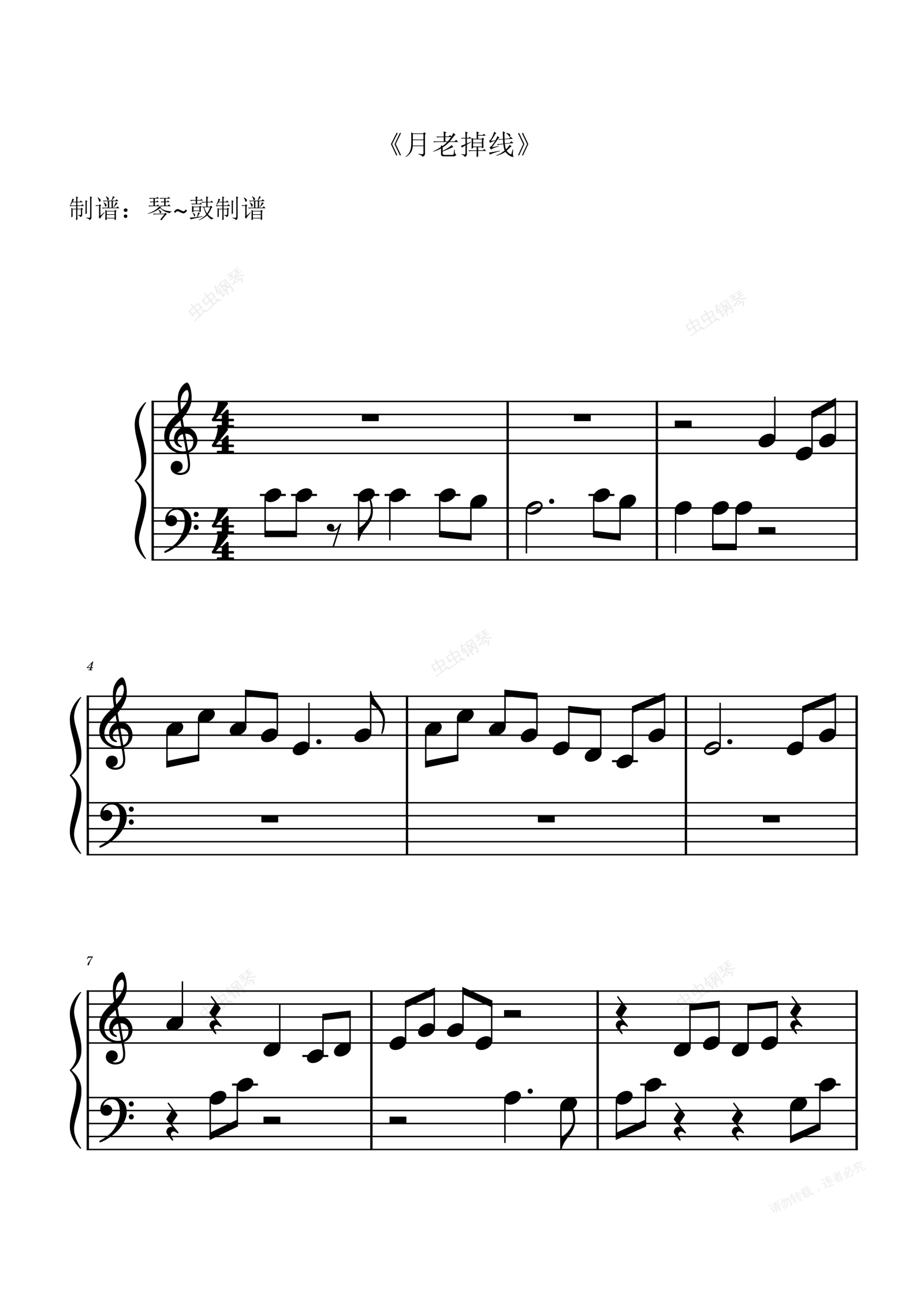 钢琴谱:《月老掉线》琴鼓制谱 小汤版 初学版 入门版 极简版