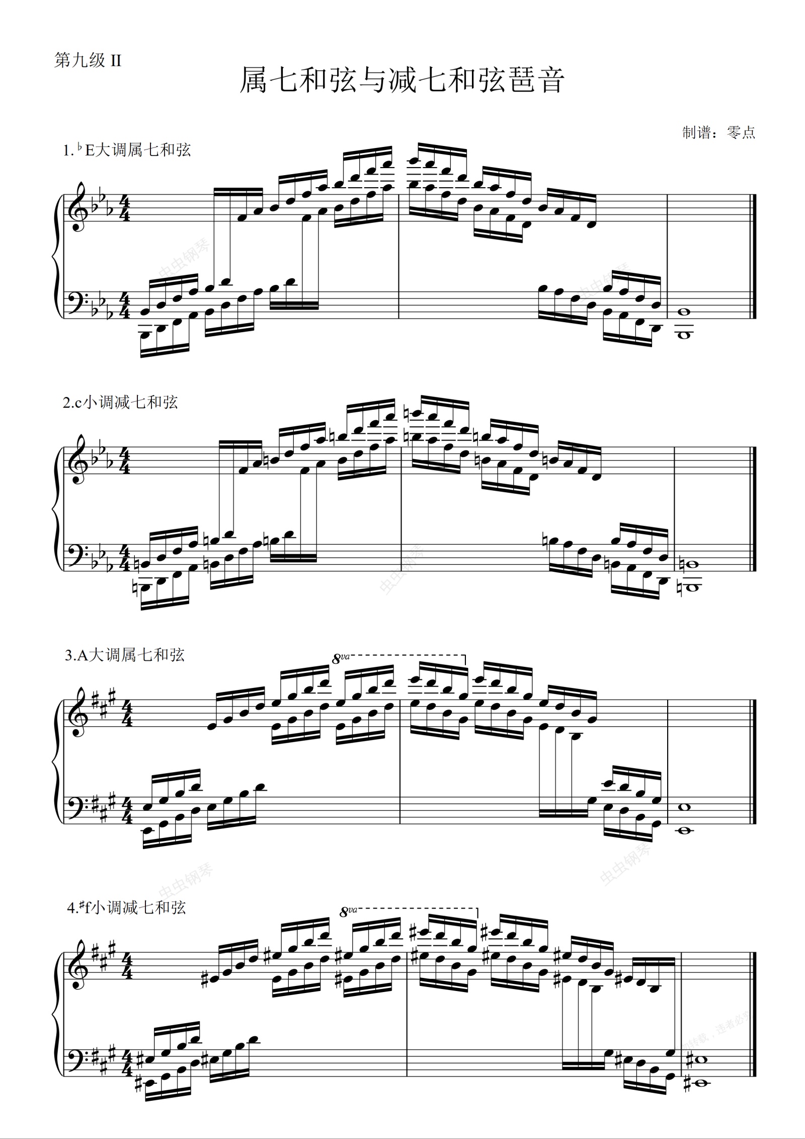 钢琴谱:第九级属七和弦与减七和弦琶音