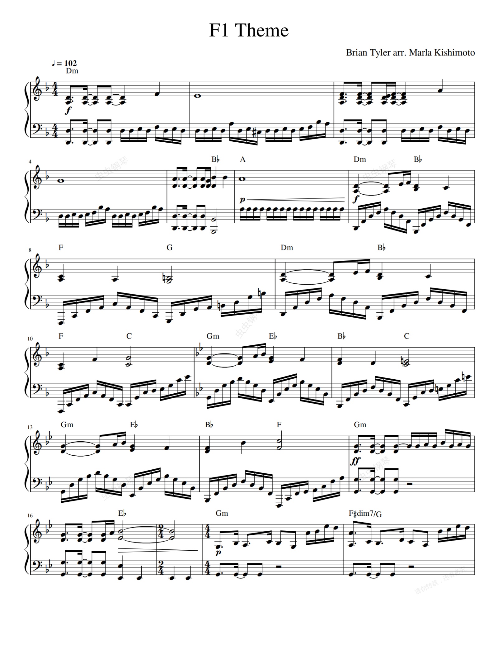 钢琴谱:F1 Theme