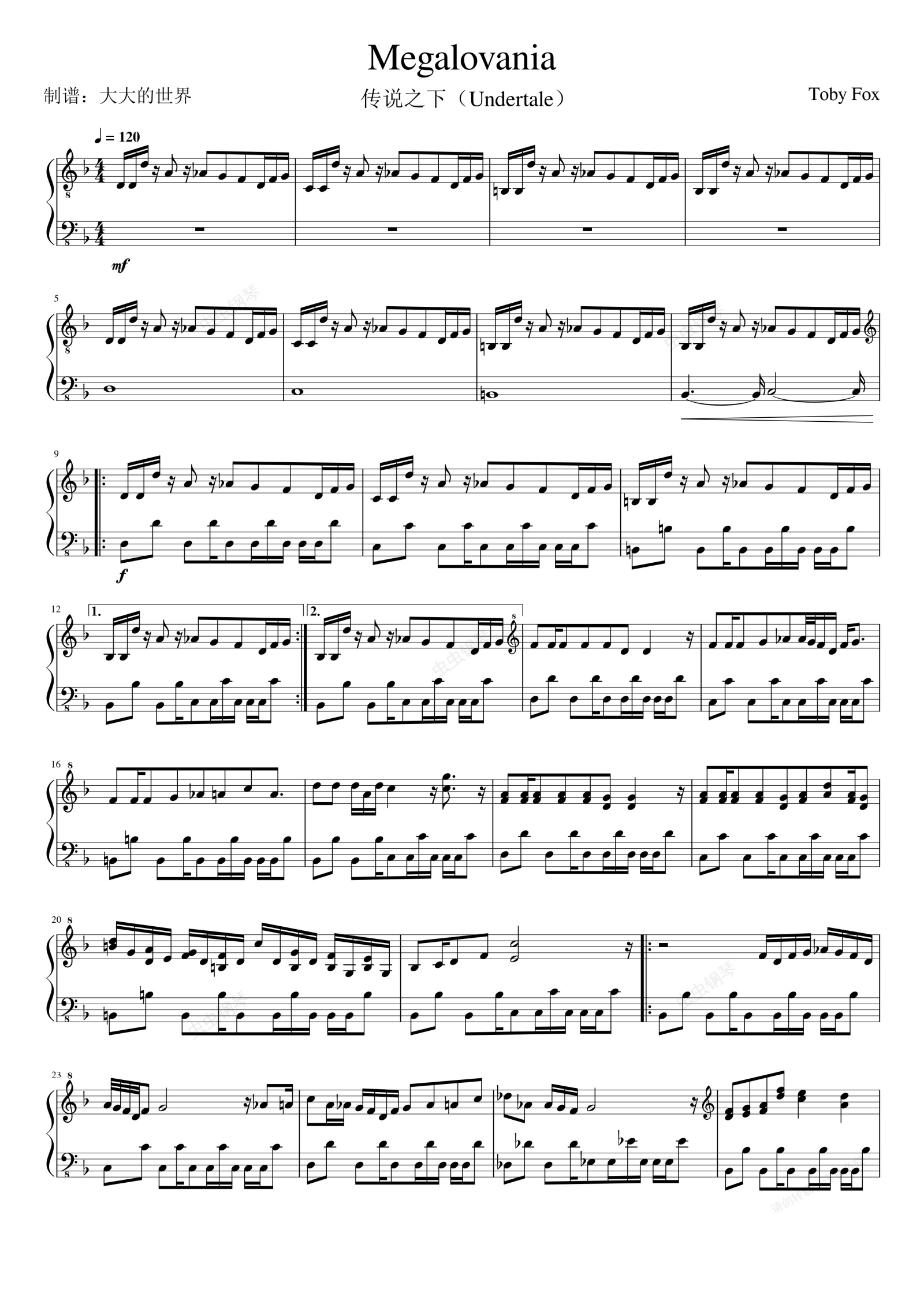Megalovania-Undertale钢琴谱(超然独奏版)传说之下BGM