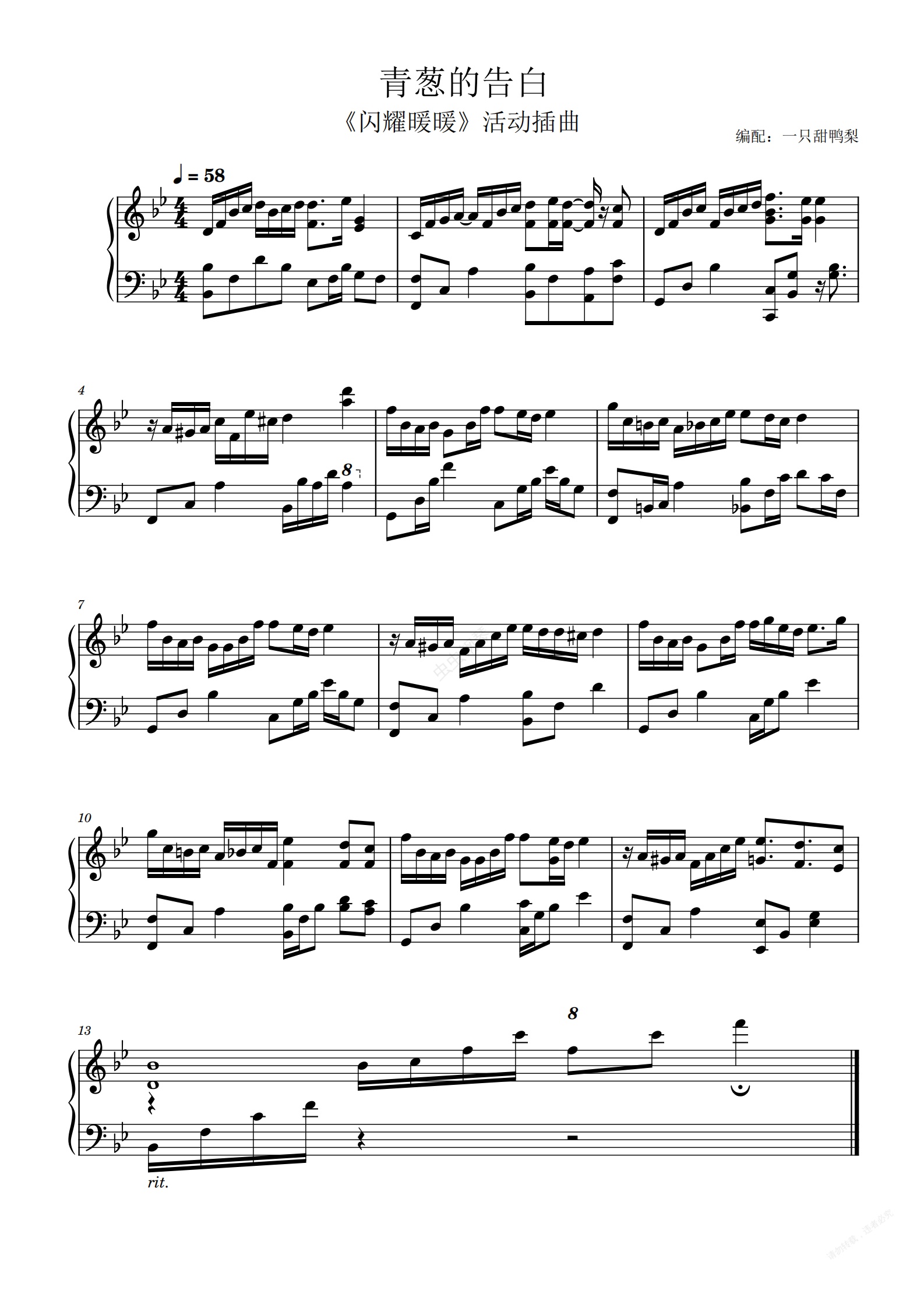 钢琴谱:《闪耀暖暖》爱衣《青葱的告白》214情人节活动BGM
