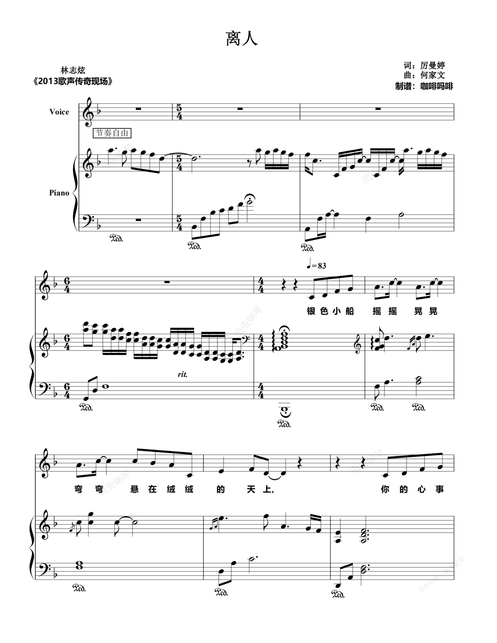 钢琴谱:离人-林志炫 F调钢琴伴奏谱