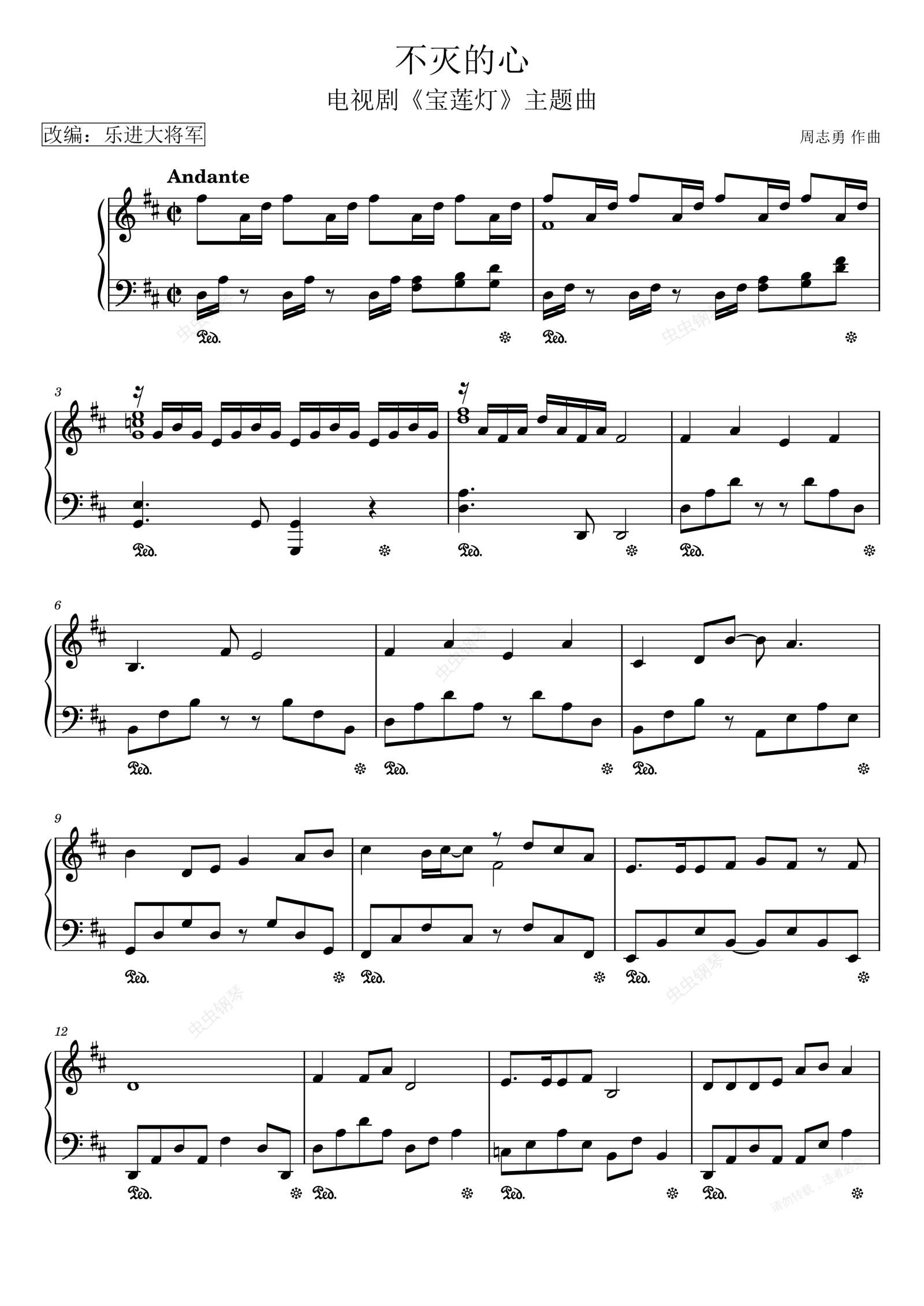 钢琴谱:电视剧《宝莲灯》的主题曲 不灭的心