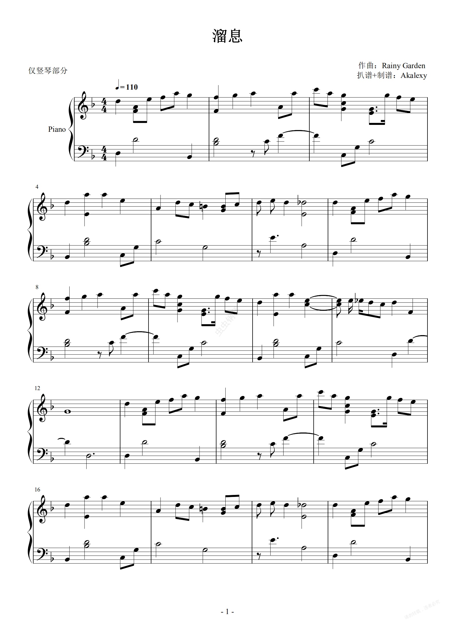 钢琴谱:《溜息(仅竖琴部分)》天地奏造